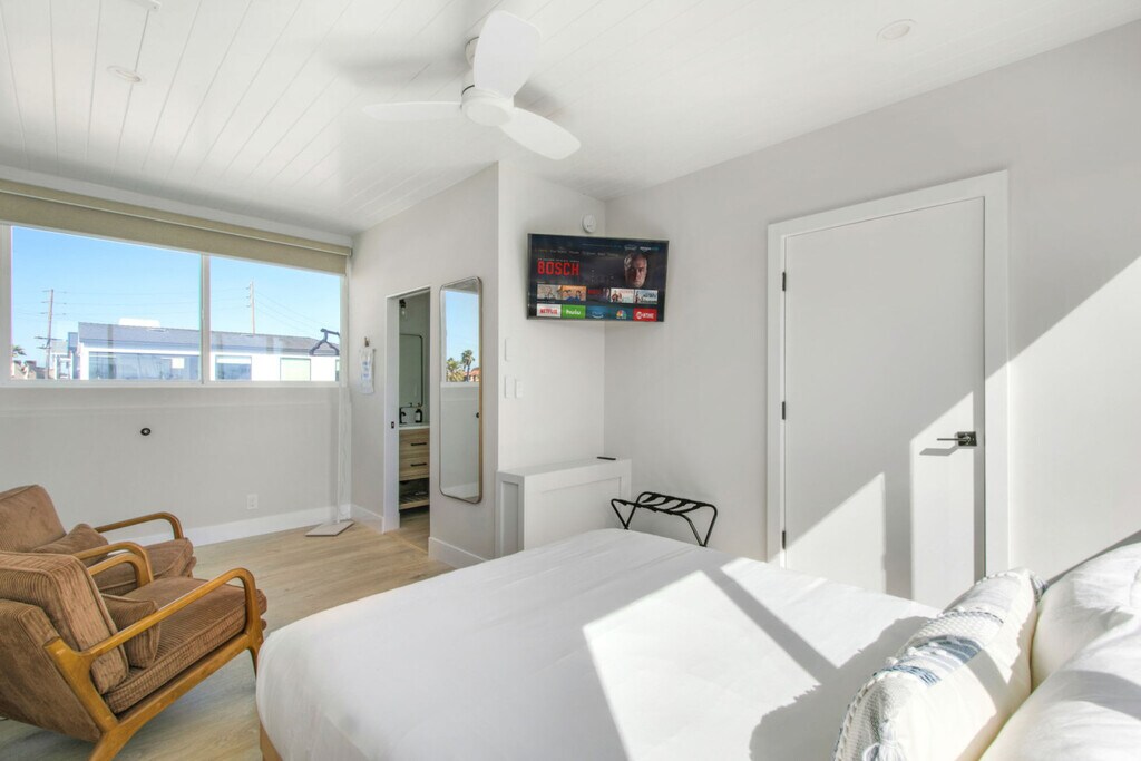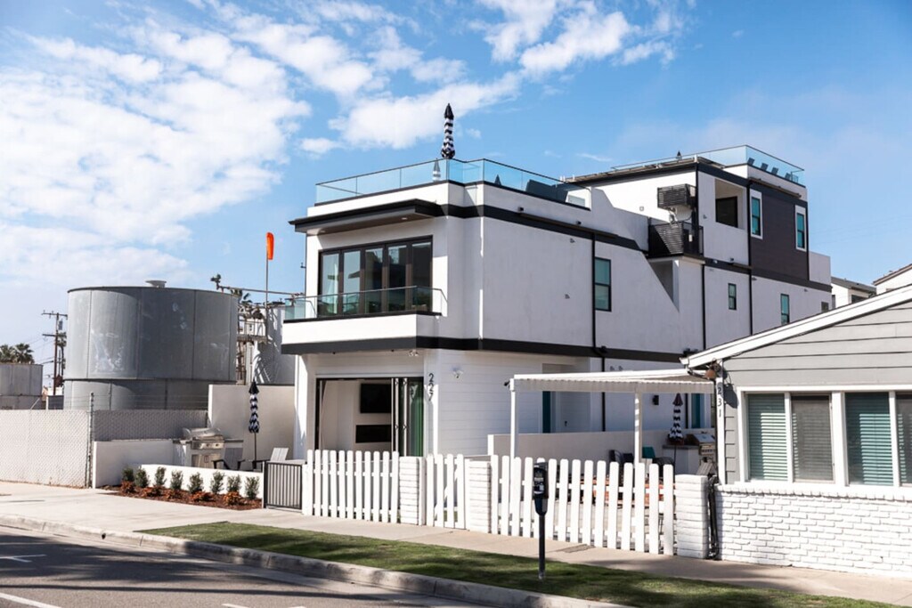 Steps from the sand, Pacific City, and Beach, this stunning 4 level unit—one the tallest in downtown—offers unreal views. Newly built and beautifully furnished, featuring 2 bedrooms, 1.5 bathrooms, and modern amenities for a luxurious stay. The private rooftop deck provides the perfect space to relax, with cozy seating and an outdoor umbrella. Enjoy the ultimate beachside retreat with easy access to surf, dining, and entertainment-all within walking distance. Ideal for a stylish coastal getaway! **BACK UNIT ACCESS ONLY, NO ACCESS TO FIRST OR SECOND LEVEL FRONT HOUSE IN PHOTOS, NO SHARED SPACE BETWEEN THE UNITS** LIVING ROOM ENTRY >Open concept living space >Comfortable couch >Barn doors to bedroom/bathroom **Washer and dryer shared next door (first come, first serve) KITCHEN >Fully stocked >Keurig coffee maker and drip coffee maker >No microwave, we do have an air fryer >Stainless steel appliances >5-burner gas stove top and oven >Sitting area >Smart TV >4 seater dining table >Sliders to patio access >AMAZING OCEAN VIEWS FROM WINDOWS/PATIO BEDROOMS >Bedroom 1: Queen bed, closet, attached bathroom >Bedroom 2: Queen bed, clothing rack, attached bathroom **Air mattress available BATHROOMS >Bathroom 1: Walk in shower >1/2 Bathroom: Sink, toilet PATIO/ROOFTOP >Propane BBQ grill >Rooftop up a flight of spiral stairs with a seating area, outdoor umbrella, aderondeck chairs >Best views of the Pier, Catalina, Ocean!!! PARKING >No garage access >1 spot provided for guests Guests will have access to the entire unit (2nd floor access, 3rd floor kitchen, 4th floor rooftop) We will provide 1 parking spot access for guests. We want your vacation rental experience to be memorable and convenient. Keeping a comfortable and clean property is what is most important to us. We will be available anytime via messenger to answer any questions or concerns. We take the approach of being hands off on the property unless needed - we want you to feel like you have the home all to yourself! OTHER THINGS TO NOTE >Must be 25 years old to book >No parties >No events >No smoking inside >Quiet time after 10pm (includes loud voices/music) - per city ordinance >No unauthorized guests other than those on the reservation >Mid stay clean required if stay is longer than 1 month - paid by guest, not part of initial reservation CAMERAS >Front door >Garage ...in place for safety and security purposes, do not tamper with PETS >$250/month per pet >2 pets max >Must be accompanied at all times and picked up after LEFT BEHIND ITEMS >$20 service charge added to shipping cost CREDIT CARD PROCESSING FEES Note: When making a reservation through our website or when using credit card payment there is a 4-6% credit card processing charge that is paid to Stripe (the credit card processing company). If AT ANY TIME there is a cancellation, the 4-6% charge is not refunded. DAMAGE PROTECTION The extra charge listed as “Waivo Insurance” on your reservation covers accidental damage in the home within a certain limit. If something happens or breaks during your stay please let us know immediately so we can file a claim. FURNISHED MONTHLY RENTAL This property is available as a fully furnished rental for stays of 1–3 months. Rates vary by month and season—please inquire for current pricing and availability. *Pricing varies by month, inquire for details* *Events, high season/low season, holidays, etc*