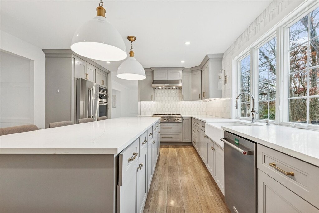 Available now for a 6 month lease ONLY! This beautifully renovated 5-bedroom, 3 full bath, 2 half bath home in the desirable Century Oaks neighborhood of Exton offers modern updates, generous living spaces, and an unbeatable location. Thoughtfully upgraded throughout with stylish finishes, hard-surface flooring in every room, and abundant natural light, this home provides comfort and convenience for a short-term stay. Enter into the welcoming foyer, which opens to a private study—ideal for remote work. The formal living room features a charming fireplace, while the elegant dining room provides the perfect setting for gatherings. The step-down family room, also with a fireplace, offers a warm and spacious setting with double sliders leading to a covered patio and stamped concrete patio, creating seamless indoor-outdoor living. The expansive eat-in gourmet island kitchen is a standout, offering 42” cabinetry, quartz countertops, KitchenAid stainless steel appliances, a tile backsplash and both overhead and under-cabinet lighting. A main-level powder room adds convenience. The luxurious primary suite includes two walk-in closets, a vaulted ceiling, and an ensuite bath with a dual vanity, walk-in shower, and private water closet. A lovely princess suite with a full bath makes an ideal guest space. A flexible loft area can serve as a reading nook, lounge, or homework hub. Three additional bedrooms which all feature customs closet shelving & recessed lighting are serviced by a full hall bathroom. The dedicated laundry room is both spacious and functional, featuring a washer & dryer, wash sink, cabinetry for storage, and built-in drying bars—a true convenience upgrade for everyday living. The walkout finished basement boasts an industrial-themed design, complete with a wet bar and powder room, perfect for entertaining or additional living space. Step outside to a fenced-in backyard, ideal for relaxation, play, or pets. The home features recessed lighting throughout and hard-surface flooring in every room—no carpet anywhere. Parking is a breeze with a 2-car garage AND driveway parking for 4+ cars. Ideally situated close to Downingtown and Exton shoppes and eateries, with easy access to major commuter routes including Rts 100, 113, 30, the PA Turnpike, and Septa/Amtrak rail, this property is perfectly positioned for everyday living and travel. Located within the acclaimed Downingtown School District and offering a 2-car garage, this home delivers exceptional comfort, convenience, and style. Cats & Small dogs are welcome, pet rent is $50/month per pet. Included in the rent is professional lawn service. Residents are responsible for PECO, gas, water, sewer, trash, cable/wifi & snow removal. Applicants must have a credit score of 690+ & monthly income of 3x the monthly rent. Call to schedule a showering & apply now at Schedule your preview today—this 6-month lease opportunity won’t last! Note: The home features decorative fireplaces in the living and family rooms, which add charm and ambiance; these fireplaces are for display purposes only and are not functional.