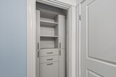 This elegant and modern raised first-floor 3-bedroom,2-bathroom condo is nestled on a wide Dorchester side street just 0.1 mi from Shawmut Red Line MBTA station. The open concept layout is ideal for entertaining,with the living room and kitchen seamlessly flowing together and providing direct access to an oversized back deck,perfect for al fresco dining or relaxing in a tranquil setting. The kitchen boasts granite countertops and stainless-steel appliances,making it both stylish and functional. All three bedrooms,along with the bathroom and hallway closets,feature California Closets custom buildouts,offering exceptional storage solutions. Wood floors add warmth and elegance,complemented by central air for year-round comfort. Adding a touch of mystery to daily living,a hidden Murphy Door bookshelf leads to your second bathroom. Additional features include private basement storage and a private washer and dryer,enhancing convenience and ease in this exceptional home. MLS# 73450534