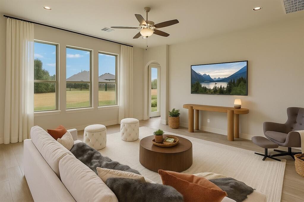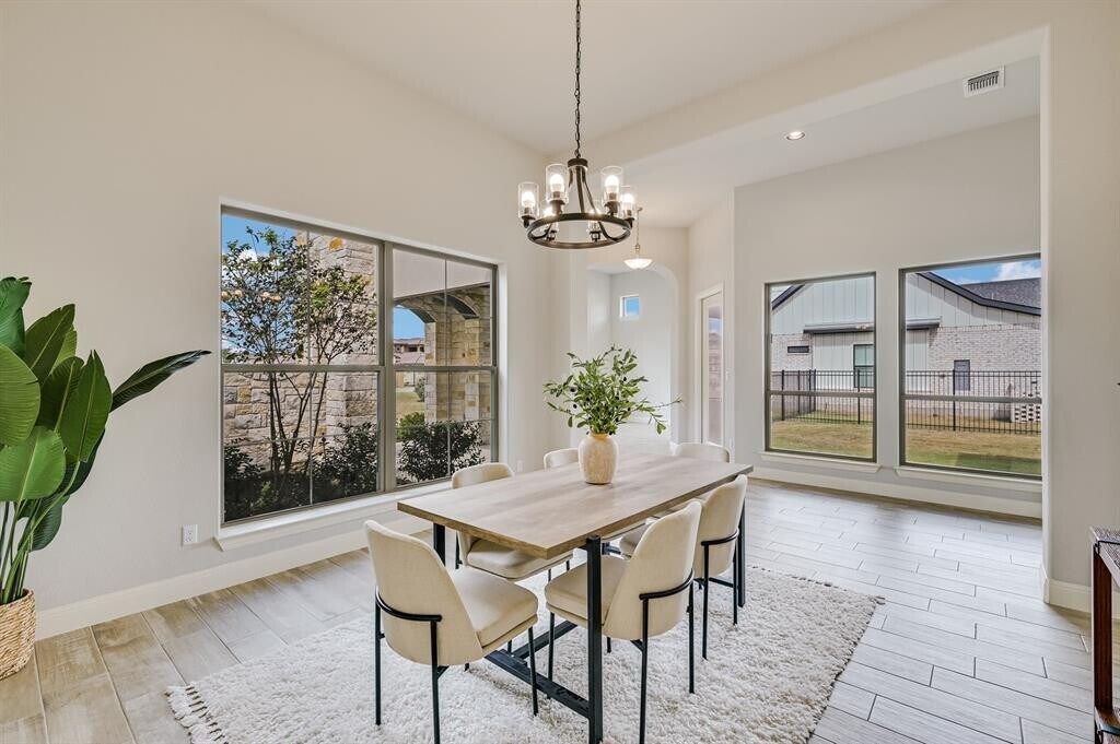 This stunning Sitterle-built home offers exceptional value with timeless Hill Country charm in Bunker Ranch! Built in 2022, this 5-bedroom, 4.5-bathroom residence delivers elevated living with modern comfort and exquisite design. Perfectly situated on a sprawling three-quarter-acre lot with ample room to add a pool, the property provides space, privacy, and style in one of the area's most desirable neighborhoods. Inside, you'll find soaring ceilings, abundant natural light, and an open floor plan that's ideal for both entertaining and everyday living. The chef's kitchen is a true centerpiece-complete with stainless steel appliances, an oversized island, quartz countertops, soft-close cabinetry, and a sleek backsplash that flows seamlessly into the spacious living area. Enjoy effortless indoor-outdoor living with a covered patio and built-in outdoor kitchen, perfect for weekend barbecues or quiet evenings under the stars. The primary suite on the main level offers a serene retreat with large windows overlooking the backyard and a spa-inspired ensuite featuring a freestanding soaking tub, walk-in shower, dual vanities, and a generous walk-in closet. The main level also features multiple living spaces, two dining rooms, a cozy sitting room or office, a versatile activity room that can be an additional living area for the guest bedroom with a full bathroom, plus two additional bedrooms with a Jack-and-Jill bathroom. Upstairs, a private living suite that includes a dedicated living space, bedroom and full bath-perfect for multigenerational living, a second home office, or creative studio. Additional highlights include a 3-car garage with 220V outlet for EV charging, a whole-house water filtration system with reverse osmosis in the kitchen, and high-efficiency HVAC with separate upstairs/downstairs controls. This is luxury living at an unbeatable value!