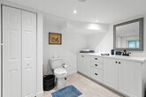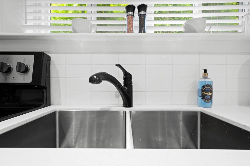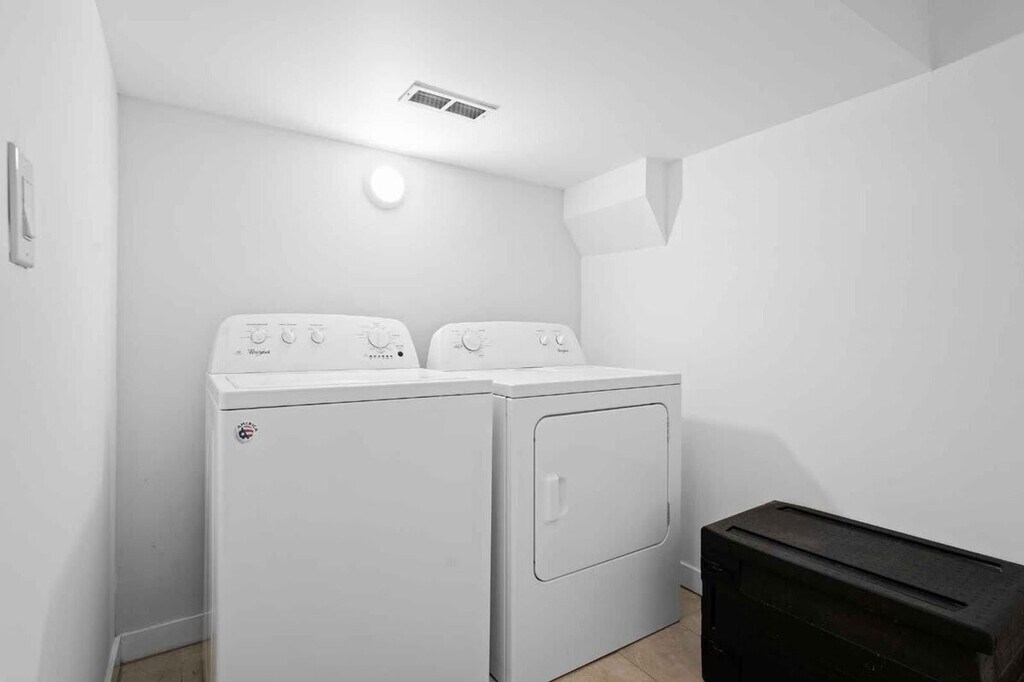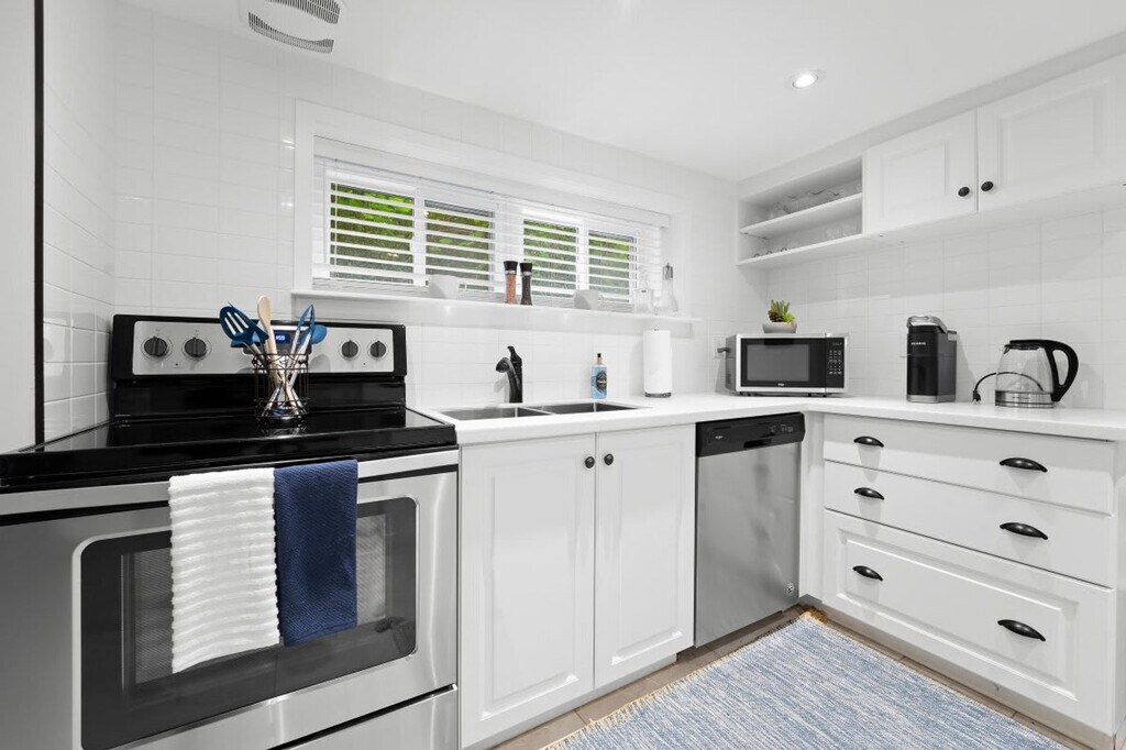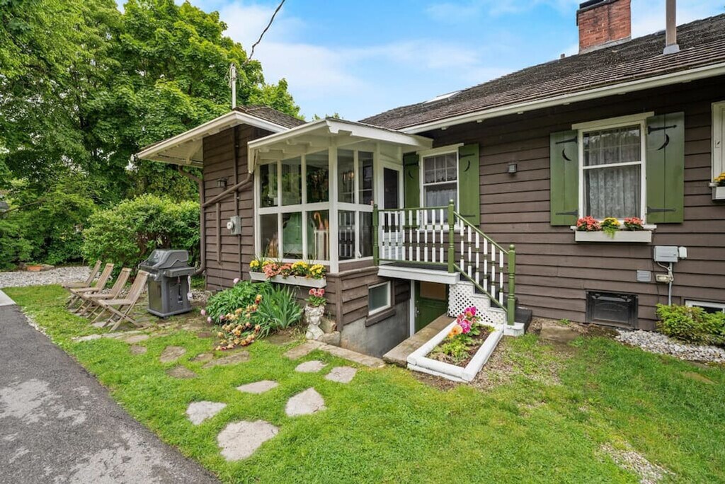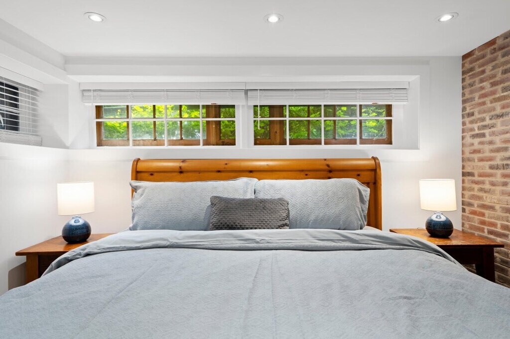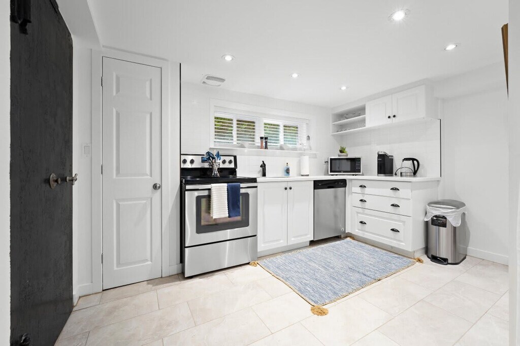 This bright 1-bedroom open-concept apartment features a king-size bed and a twin Murphy bed, along with a spacious new bathroom. Perfect for a work-from-home set-up, this unit also includes a free on-site washer and dryer. Located off Lakeshore Road, it offers a quick 15-minute walk to downtown Burlington, known for its fantastic dining, spas, boutiques, cafes, and art galleries. The neighborhood features a very mature landscape, and the apartment is peacefully tucked away from the main road. The property sits right on the magical grounds situated on the lake, with the exquisite interior brimming with old-world charm and character. This whimsical home is something you must experience for yourself! The residence is conveniently located: a 5-minute drive to the nearest GO station for easy access to the Greater Toronto Area, grocery stores, and the highway. Additionally, it's a short 5-minute drive to the shopping mall, 35 minutes to downtown Toronto, and 40 minutes to Niagara-on-the-Lake, offering an ideal centralization and the best of both worlds. If you have furry friends joining you, there will be a pet fee of $100 per stay. The property is ideally located in the core of Burlington, Ontario. In 15 minutes, you can walk to downtown Burlington, offering fantastic dining and restaurant options, spas, boutique shopping, cafes, gyms, exercise facilities, art galleries, and the theatre. The apartment is located right off Lakeshore Road, one of the most desirable streets in Burlington with executive homes dotted along the lakefront. The neighborhood features a very mature landscape, and the apartment is peacefully tucked away from the main road. The property is a 5-minute drive to the nearest GO station, which can take you all over the Greater Toronto Area, a 5-minute drive to the nearest grocery stores, a 5-minute drive to the highway, a 5-minute drive to the shopping mall, 35 minutes to downtown Toronto, and 40 minutes to Niagara-on-the-Lake, ideally centralized for the best of both worlds. The backyard and the driveway are shared. If there are no guests in the main house, you may use the backyard exclusively. Otherwise, the backyard may not be used. Smoking or vaping is strictly prohibited within the unit or near exits. This is a basement unit. The second bed is a Murphy bed, located across from the king bed. Kindly show consideration for your neighbors by maintaining low noise levels. Parties are not permitted. Your unit is fully private, only the driveway is shared. Please park on the right side. Replacement fees will apply for missing or damaged amenities, utilities, or equipment. Towels, sheets, and toiletries are provided for your use during your stay. Please refrain from taking them. Missing items will incur fees. If pets accompany you, please pick up after them. Landscaping contractors will be at the property weekly. Perfect for a work-from-home set-up, this unit includes free on-site washer and dryer. [SI]