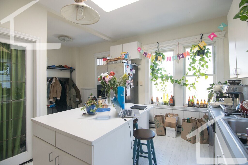 Available June 1st NIce unit in great location Washer and dryer in unit This has a fantastic kitchen that includes a down-draft vented Jennaire electric cooktop in addition to a full gas stove, skylights in kitchen and one bedroom Sorry, no pets or undergrad Street parking available First, security, and lock change fee to move in