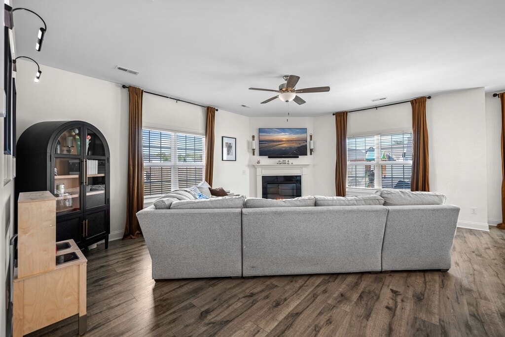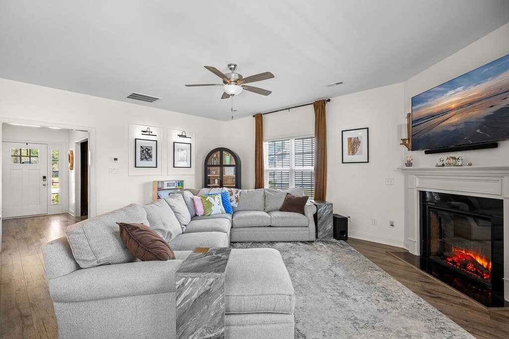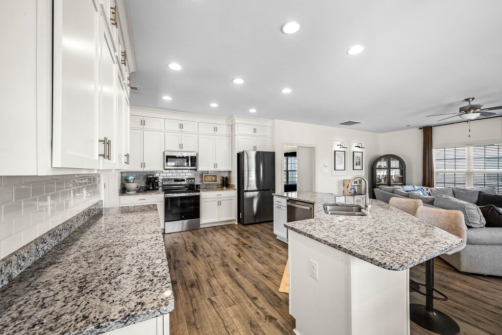 Welcome to this spacious 4-bedroom, 2.5-bath home in The Shores at Windpointe! A versatile flex space greets you at the entry, featuring beautiful built-in bookshelves and additional storage--perfect for a home office, dining area, or cozy sitting room. The bright, open-concept main living area seamlessly connects the living room, kitchen, and dining space, complete with a large center island ideal for everyday living and entertaining. Upstairs, the primary suite offers two walk-in closets and a private en suite with dual sinks, a soaking tub, and separate shower. Three additional bedrooms--each with walk-in closets--and a full hall bath complete the second floor. Enjoy a traditional grass front yard and a fenced backyard with low-maintenance turf--perfect for relaxing or entertaining with ease. Conveniently located near local beaches, Camp Lejeune, and everyday amenities, this home truly has it all. Book your showing today!