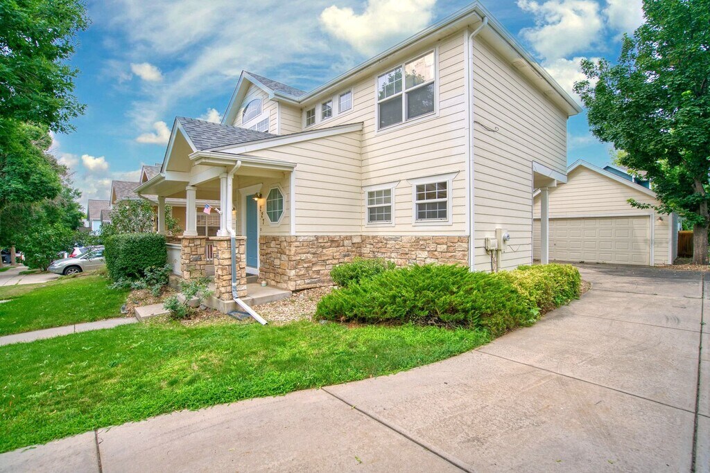 This updated Mill Village home combines comfort, style, and convenience. Enjoy one of the most private yards in the neighborhood, a welcoming covered front porch, and attractive stone veneer accents. Inside, you’ll find brand-new flooring on the main level, vaulted ceilings, and fresh paint throughout. The remodeled kitchen features granite countertops, plenty of cabinet space, a professional hood vent, and a pass-through to the dining area. A cozy gas fireplace adds warmth and charm, visible from the kitchen, dining, and living spaces. Sliding doors open to a backyard patio, perfect for outdoor dining. Upstairs, the large primary suite offers vaulted ceilings, a 5-piece en-suite bath, and a modern walk-in closet. Two additional bedrooms and another full bath make the layout highly functional. A detached two-car garage, main-level powder room, and mud/laundry area by the back door add even more convenience. Ideally located near UCHealth Longs Peak Hospital, Costco, Union Reservoir, I-25, DIA, and all the best of the Front Range. Contact us today for more information and to schedule a showing!