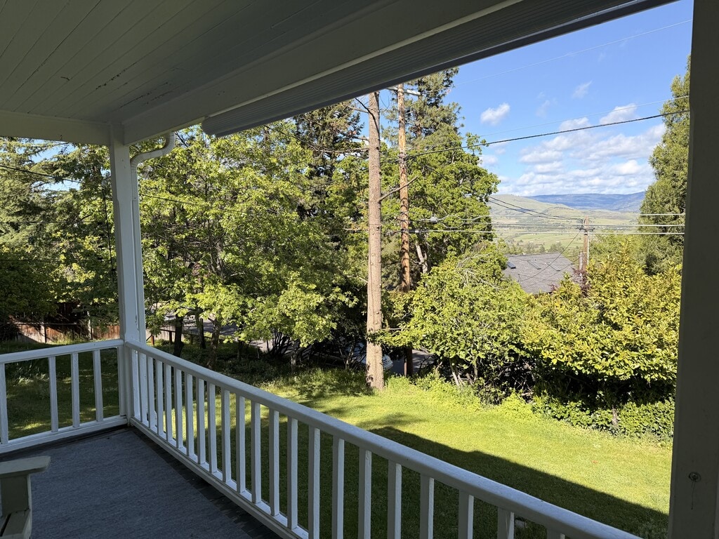 Craftsman Bungalow Just Above Downtown Ashland Tucked onto a quiet, tree-lined street a short walk from the Plaza, Lithia Park, and OSF. The covered front porch takes in valley and mountain views. Inside, the living room features exposed wood beams, hardwood floors, and character. The kitchen has a gas range and an open staircase with built-in beadboard drawers tucked beneath for lots of storage. Main-level bedrooms offer single-level living with hardwood floors and mature-tree views. The full bath features a vintage clawfoot tub. Upstairs, a bonus room works as an office, studio, or guest space. A ductless mini-split and vinyl windows throughout keep it efficient year-round. All on one huge lot in one of ashlands most beautiful neighborhoods Walkable, private, and full of Ashland character. Sorry pets are not allowed SingleFamily