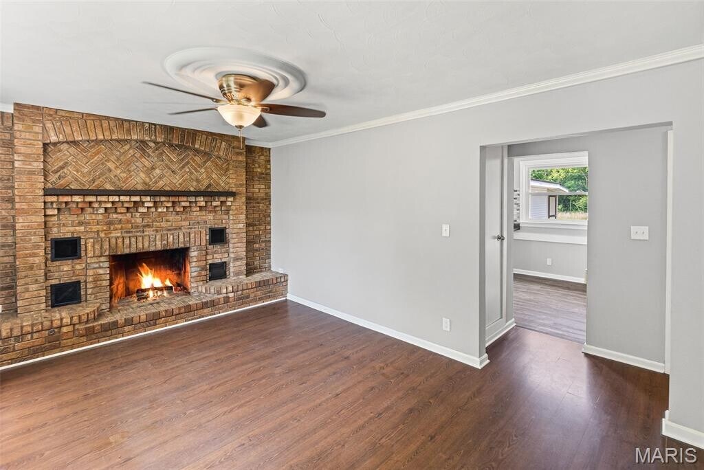 Two Bedroom House in Parkway Place Subdivision, LVP Flooring in Main Living Areas, 13 x 11 Living Room Features F Wood Burning Brick Hearth Fireplace, 14 x 10 Eat In Kitchen Includes Glass Top Electric Range, Garbage Disposal and Refrigerator, Full Hallway Bathroom, 12 x 10 First Bedroom, 11 x 11 Second Bedroom, Basement Includes Half Bathroom and Additional Unfinished Space, Washer and Dryer Connections, Large Back Patio and One Car Detached Garage, Available Now.