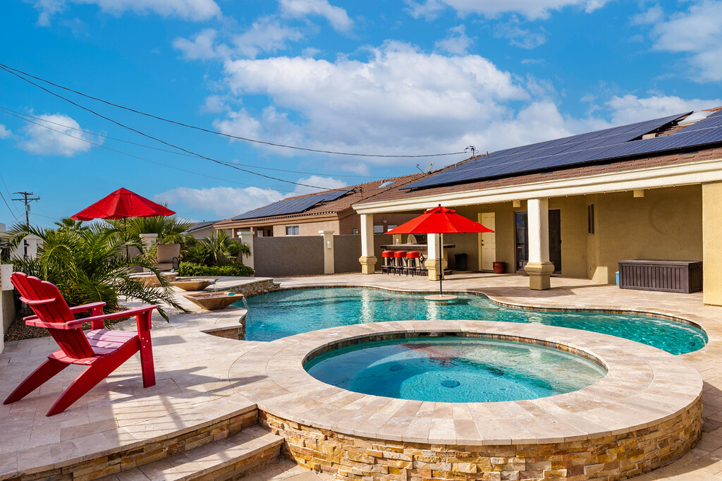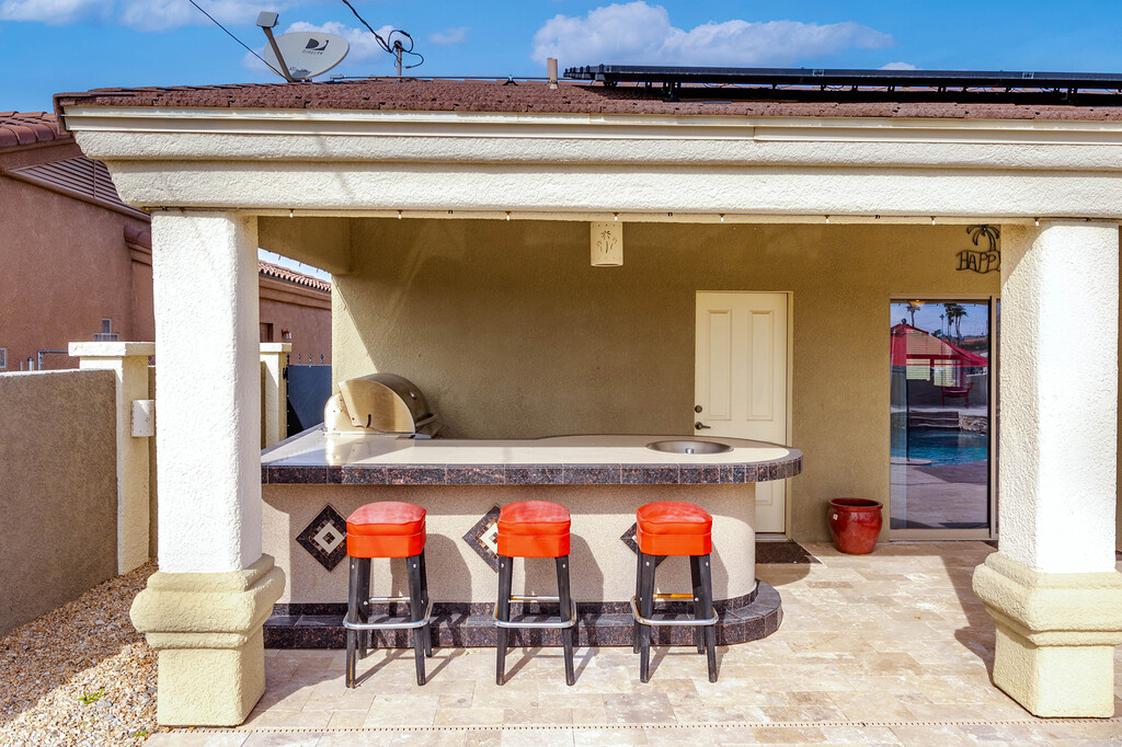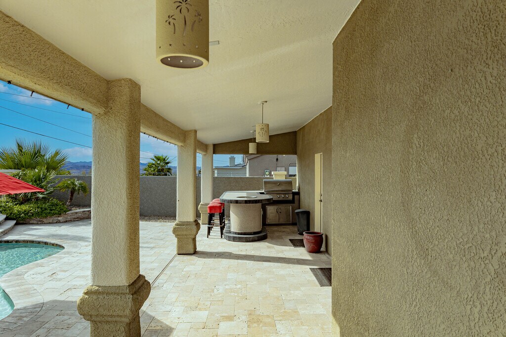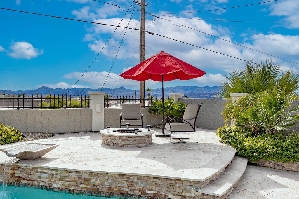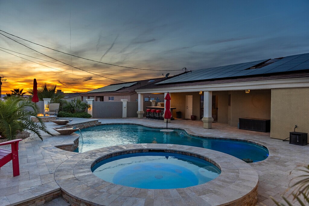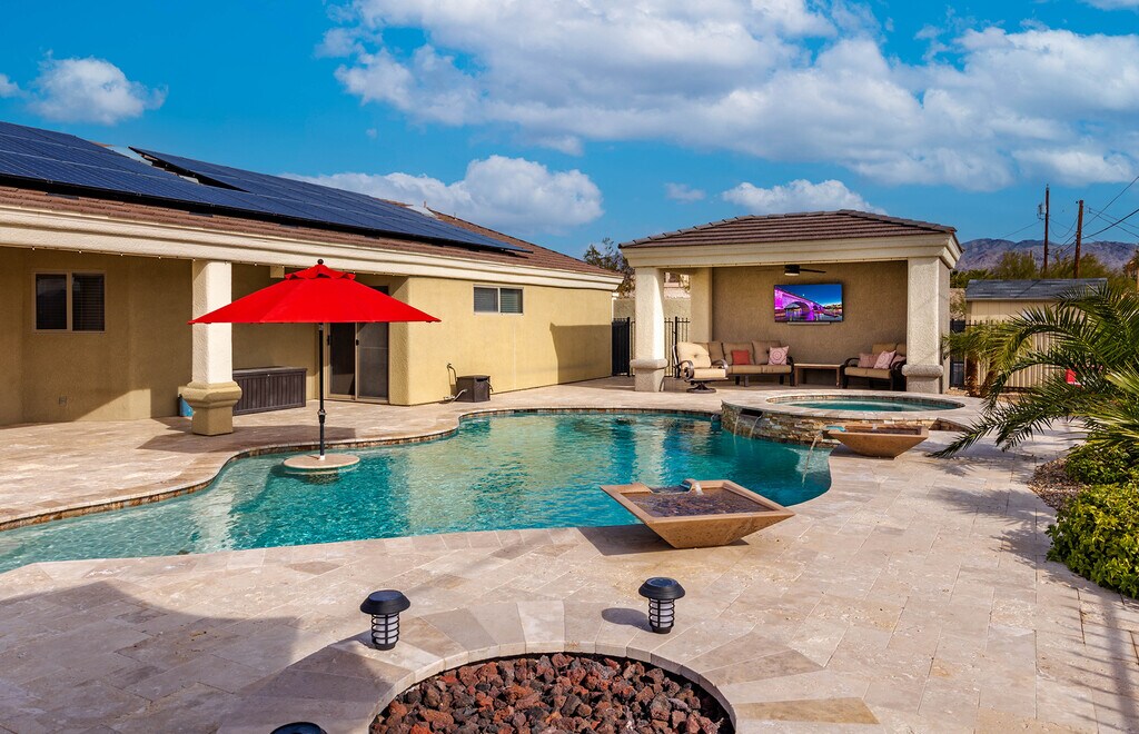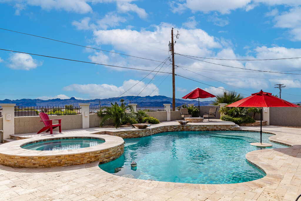 This centrally-located home provides convenient access to everything. The spacious and luxurious property is ideal for families or groups, featuring a fully stocked kitchen, a large living room with a massive couch and TVs in every room. The garage's game room offers a bar and pool table. The backyard is a gem, boasting a heated pool, spa, fireplace, gazebo, built-in BBQ, and dining area for a complete and enjoyable experience. LIVING ROOM >Desk w/ monitor and keyboard to connect a laptop to >Large sectional seating with comfortable chairs >Smart TV (login to own streaming apps) >Open concept kitchen/dining/entertainment space KITCHEN >Fully stocked kitchen with cooking supplies >Kitchen island with barstools (4) >Drip coffee maker >Keurig coffee maker DINING ROOM >Dining table with chairs (4) BEDROOMS 1) Primary suite - King bed, Smart TV, en suite bathroom, walk in closet, backyard access 2) Junior suite - Cal king bed 3) Twin over full bunk bed + Queen bed **Pack n play available BATHROOMS 1) Attached to primary suite - double vanity, tub, walk in shower 2) Hallway bathroom - shower/tub combination 3) Attached to junior suite - walk in shower EXTERIOR FRONT >Steep driveway >3 car garage width in parking >Outdoor seating >Great lake views!! EXTERIOR BACK >Heatable pool* >Spa >Pool umbrella >Covered patio with outdoor seating >Gazebo with outdoor seating and outdoor Smart TV (login to own streaming apps) >Misters >Sun loungers >Built in BBQ grill with kitchen bar and bar seating >Built in fire pit >Lake views!! GARAGE >Games >Garage bar with seating >Pool table >Smart TV (login to own streaming apps) >Space for 1-2 cars to park on one side of the garage Guests will have access to the entire home. The garage is a game room, there is still space for 1-2 cars to park in the garage. We want your vacation rental experience to be memorable and convenient. Keeping a comfortable and clean property is what is most important to us. We will be available anytime via messenger to answer any questions or concerns. We take the approach of being hands off on the property unless needed - we want you to feel like you have the home all to yourself! Residential street -- up on a hill so better views and less noise. Luxury homes nearby. Walk, bike, drive, Uber -- everything is 5-10 minutes away! OTHER THINGS TO NOTE >Must be 25 years old to book >No parties >No events >No smoking inside >Quiet time after 10pm (includes loud voices/music) - Per city ordinance >No unauthorized guests other than those on the reservation >Steep driveway POOL HEATING >$125/day to heat the pool (full stay required) >It can take 1-2 days to heat the pool so we need advanced notice >Spa heating included in the booking amount -- increased price in winter months (November to March) -- if the stay exceeds 5 days, there is additional $15/day charged for unlimited spa usage PETS >This is not a pet-friendly home, sorry FIREPIT/GRILL >We try to keep our properties tanks full, but we aren't always sure. If you have to go fill the tank, please send us the receipt so we can reimburse you DEPOSIT >We may ask for a $250 deposit hold, or $500 for holidays LEFT BEHIND ITEMS >$10 service charge added to shipping cost CAMERAS >Front entry >Motion detected and recorded TPT# 21539560 Vacation Rental Permit# 86552 CREDIT CARD PROCESSING FEES Note: When making a reservation through our website or when using credit card payment there is a 4% credit card processing charge that is paid to Stripe (the credit card processing company). If AT ANY TIME there is a cancellation, the 4% charge is not refunded. DAMAGE PROTECTION The extra charge listed as “Waivo Insurance” on your reservation covers accidental damage in the home within a certain limit. If something happens or breaks during your stay please let us know immediately so we can file a claim. Note: This amount only covers a 10 day or less stay. If you are staying longer than 10 days we will request the difference in amount for coverage.