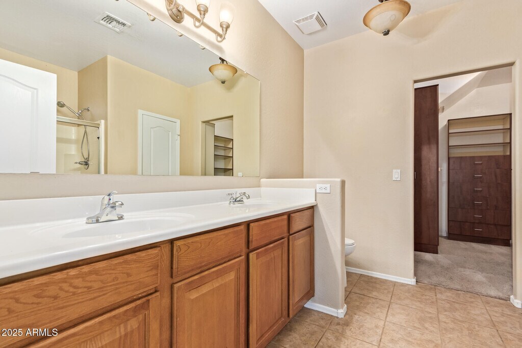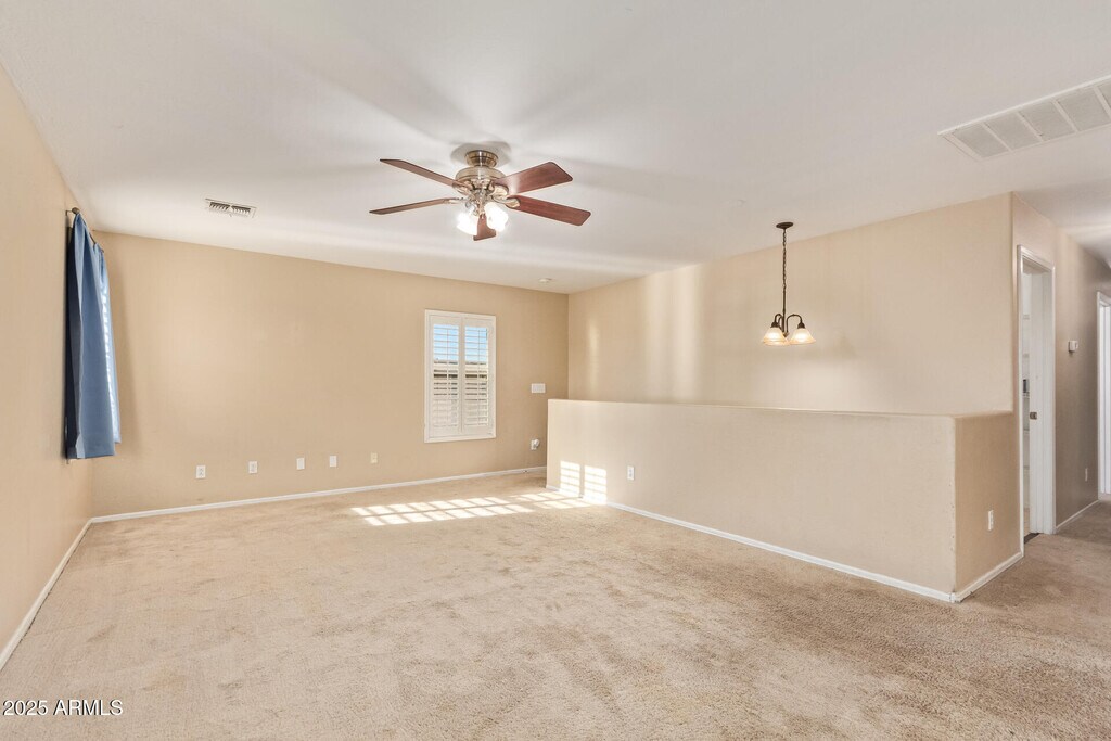 This is an absolute must see! This gorgeous home features a great room floor plan with open living,dining,kitchen & flex room at entry - perfect for a den/office,frml dining or living room. FRESH two-tone paint,NEW carpet,neutral tile & laminate wood flooring,dramatic high clings,custom blt-ins in walk-in closets,blinds,plantation shutters,French doors & more. Chef's kitchen has SS appliances,recessed lights,& an island with a breakfast bar. Master suite is downstairs with double sinks,& a separate exit to the backyard. All other bedrooms are upstairs as well as the HUGE loft. Bedrooms are spacious with walk-in closets. Gorgeous mountain views enhance backyard entertaining & desert landscape w/ artificial grass make for easy living.
