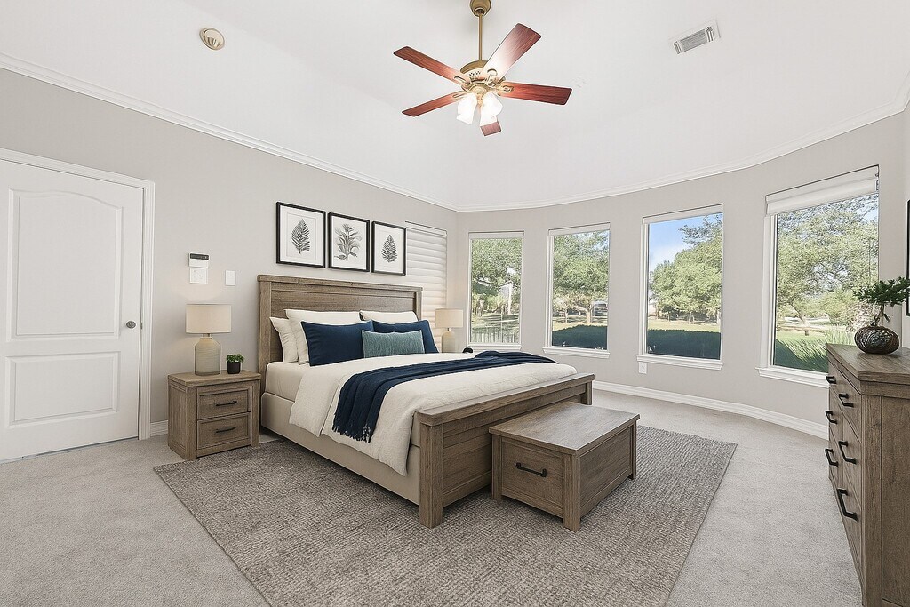 Beautiful 1-story home in desirable Grand Lakes,set on a rare double-view water lot w/ peaceful views and direct access to the community trail. Raised ceilings,hardwood floors,and abundant natural light create an inviting atmosphere. The updated kitchen offers granite counters,stainless steel appliances,& a skylit dining area that opens to the living space w/ serene lake views and a cozy fireplace. The private suite features new carpet,a soaking tub,separate shower,and granite counters. A bonus room above the garage (approx. 200 sq. ft. with its own AC/heat) is perfect for a gym,office,or hobby space. Additional highlights include upgraded bathroom trim,custom solar screens,and a 2020 roof. Conveniently located near pools,parks,and tennis courts,w/ easy access to 99,I-10,& Westpark Tollway. Don’t miss this rare lease opportunity - schedule your tour today! MLS# 15058209
