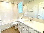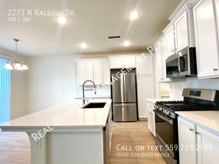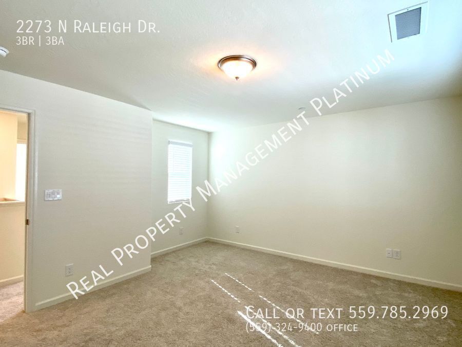 CLICK here to schedule a showing: Move in ready 3 Bed/ 2.5 bath. Wood tile flooring throughout. Carpet upstairs. Faux wood blinds on all windows. Entry opens to an open and spacious floor plan including the great room, dining and kitchen. Great room has recessed lighting and big windows and sliding door for great natural light. Beautiful kitchen has quartz counter tops, center island with breakfast bar and deep farm sink. Stainless steel appliances include gas stove, built in microwave, dishwasher and refrigerator. Additional built in buffet bar near the garage. Downstairs guest bathroom has a pedestal sink. Upstairs hallway closet has washer and dryer. Master bedroom is very spacious with en suite, quartz counters, nice tile shower with seat and walk in closet. Additional cabinets near each bedroom. Attached 2 car garage equipped with electric car plug in station. Backyard has cement patio. No pets. No smoking. Owner purchased Solar panels to provide tenants a much lower PG&E bill. Tenants pay PG&E, True Up, and Fresno utilities. Tenant in charge of yard care. Credit score above 650 required. Great gated community with future plans for a community swimming pool. Clovis Unified School District. Renter's insurance is required. Call to schedule a showing or to contact the office. DRE# 01901101. All information is deemed reliable but not guaranteed and is subject to change. Gated Community Hoa Community Pool No Pets Allowed Non Smoking Renters Insurance Required Solar Panels Tenant Pays Pg&E And True Up