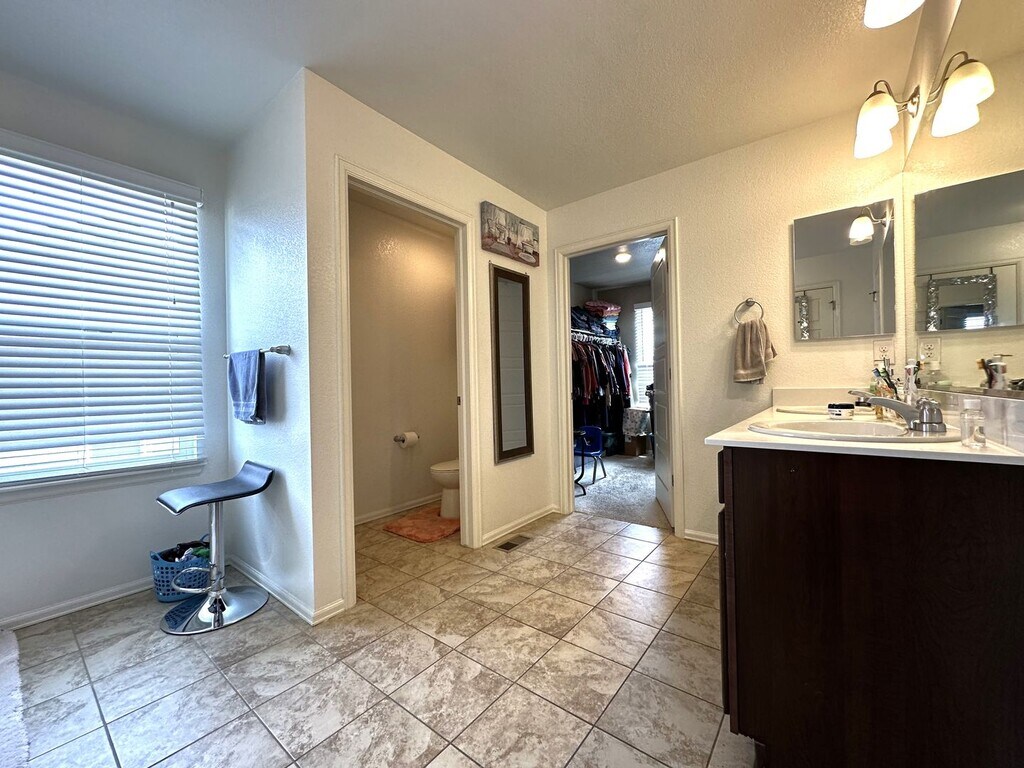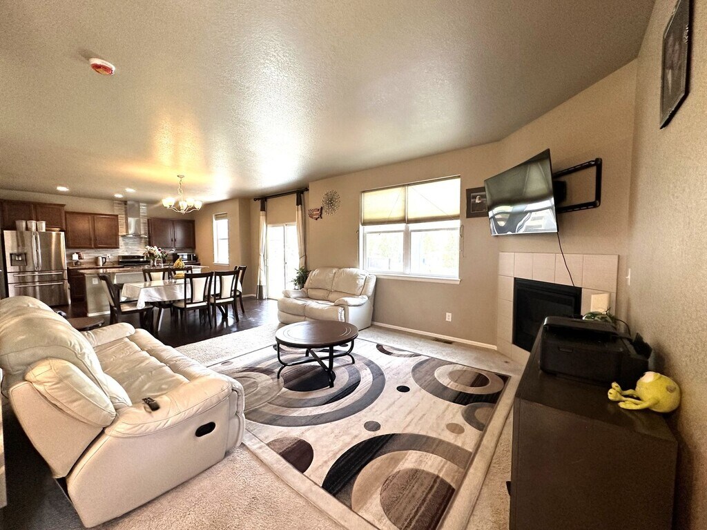 This home is a must see. The open floor plan with a beautiful expansive kitchen island with countertop seating, elegant slab granite countertops, stainless steel appliances and a pantry for extra storage. While cooking you can enjoy the gas fireplace in the family room or look out into the great fenced backyard. Complete with a stamped concrete patio, and great landscaping. The perfect place to enjoy your favorite beverage. Upstairs, you'll find all four bedrooms, each featuring its own walk-in closet. Close to bike paths and walking trails. Washer/ Dryer included. Tenant is responsible for all utilities - however solar panels reduce electricity bill, average $25/month. One dog ok with a $35 pet rent. Contact Trilogy Property Management to schedule your showing at .