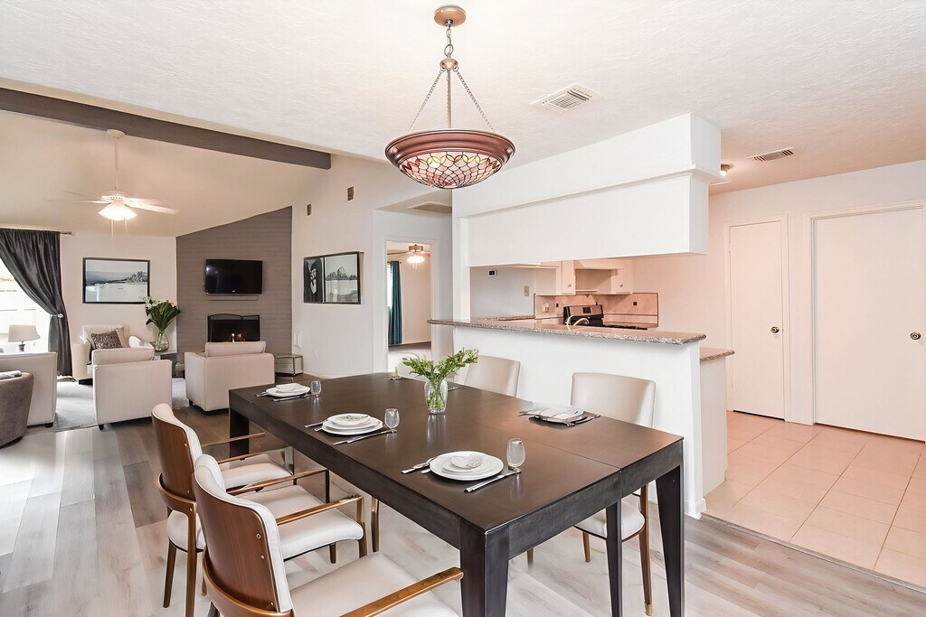 Beautiful nicely maintained 3 bed 2 bath split plan that shows very well.Large family room with high ceiling and corner fireplace with gas logs.Inviting kitchen with granite counter,travertine backsplash,tile floors and pantry.Spacious primary bedroom with brand new shower and walk-in closet.Neutral wood laminate flooring in Living/Dining and all Bedrooms...NO CARPET!Refrigerator,Washer and Dryer included.Full automatic sprinkler system.Enjoy outdoor gatherings with a large covered patio and ample room for kids/pets.Owner/agent will provide yard service for an additional $100/month.HURRY!!! MLS# 7529673