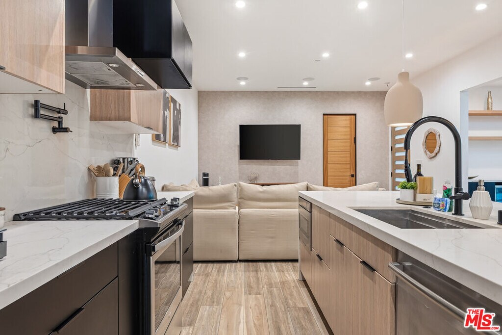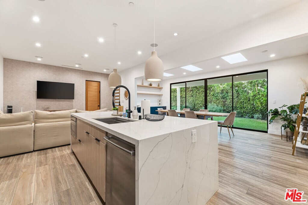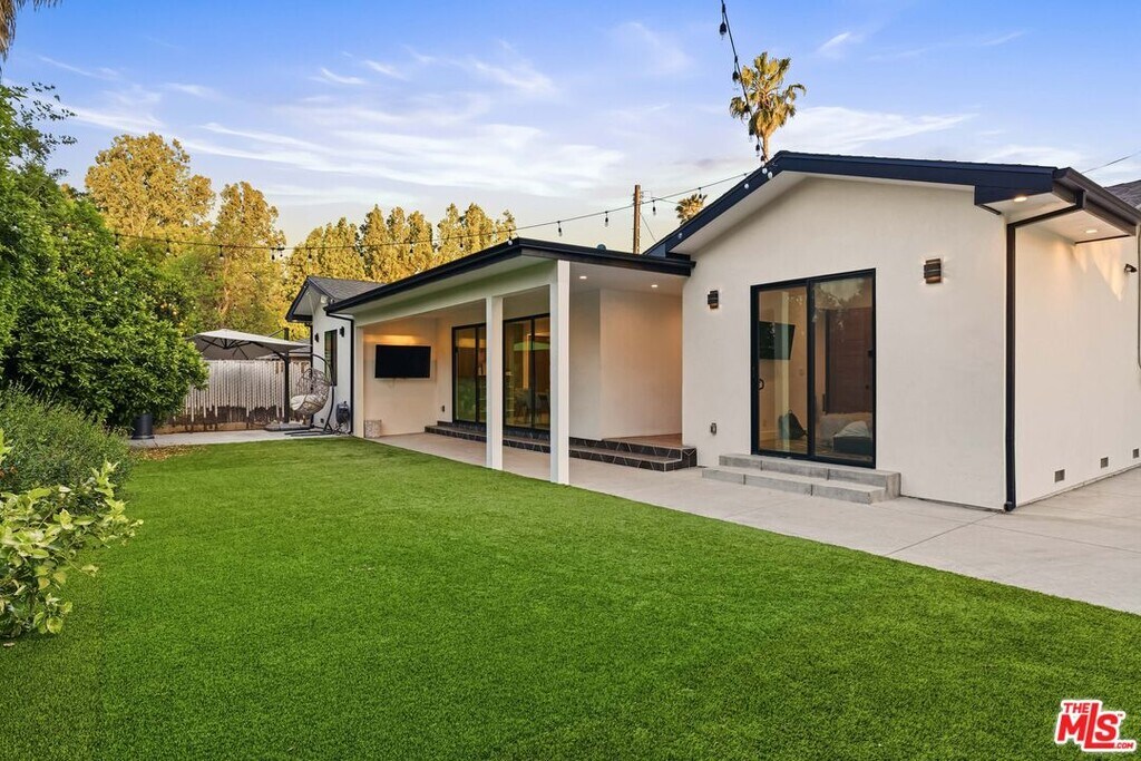 NEWLY BUILT - FULLY FURNISHED - PRIME WOODLAND HILLS LOCATION - FLEXIBLE LEASE TERMS. Stunning newly constructed modern home offered fully furnished and fully equipped, ideal for both short-term and long-term living. This beautifully designed 3-bedroom, 2-bath residence features a bright open-concept floor plan with wall-to-wall hardwood flooring and seamless indoor-outdoor flow.The chef's kitchen is appointed with high-end appliances, sleek cabinetry, and a spacious breakfast bar, perfect for both everyday living and entertaining. The luxurious primary suite includes a king-sized bed, walk-in closet, en-suite bath, and direct access to the backyard through sliding glass doors.Enjoy a private, low-maintenance backyard retreat complete with lush turf, BBQ area, and covered outdoor dining space perfect for relaxing or hosting.Additional features include a private 4-car driveway and an unbeatable location just minutes from top-rated shopping, dining, and entertainment in the San Fernando Valley, with easy access to the 101 and 405 freeways. MLS# 26669387
