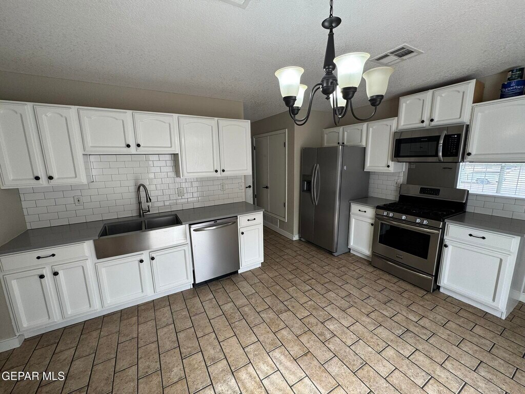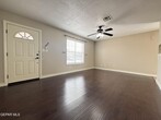 This updated 3-bedroom home offers modern finishes while remaining close to everyday conveniences in East El Paso. The open living area is perfect for entertaining and connects directly to a renovated kitchen featuring quartz countertops,white flat-panel cabinetry,subway tile backsplash,stainless steel farmhouse sink,and durable tile flooring. Bedrooms feature rich wood flooring that is low-allergen and built to last,while wood-trimmed casement windows add a finished look throughout the home. Refrigerated air ensures summer comfort,and both bathrooms have been updated with new plumbing and light fixtures. The primary bedroom includes a walk-in closet and tub/shower combo. An oversized garage provides added storage. Convenient access to Loop 375,Montana Avenue,Zaragoza Road,shopping,dining,and schools. Office qualifications include a 600+ credit score,two years of good rental history,and rent not exceeding 35% of gross monthly income.