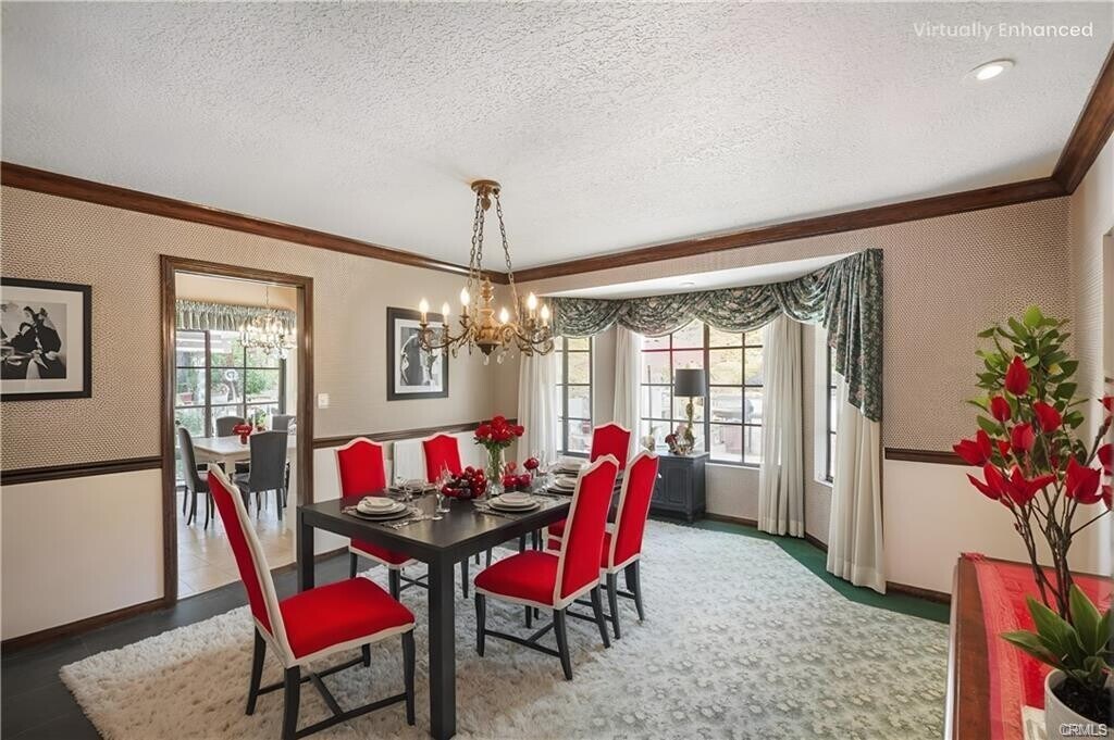 A stunning 4,050 sq ft. 4 Bedroom, 5 Bath home, that sits on a large lush ½ Acre lot at the end of a quiet Cul-de-sac in the highly coveted Roy Rogers Estates. Tucked away in the foothills of Chatsworth, close to awarding winning schools, Popular restaurants, entertaining and shopping. Freeway access is also close by. This tranquil Oasis is ideal for raising families and entertaining guests alike. Open the tall beautifully stained Double doors to a large foyer entry where you will find high ceilings and beautiful wood floors that lead you into a thoughtfully laid out floor plan. There is a chef's kitchen with lots of windows and natural light that features newer top of the line appliances and eating area, perfect for family meals. The kitchen opens up to an exquisite formal dining room. There is a huge cozy family room with a wet bar, gas fireplace, vaulted wood ceilings and large Bay window to fill the room with sunlight, step down to the formal living room with French doors, balcony, gas fireplace to entertain your guests. Just across the entry is a Wood Panel Parlor room with beamed ceilings, perfect for a grand piano and sitting area. The master bedroom is oversized with French doors opening up to your private balcony. There’s good size dressing area with a cedar closet and spa style bathroom with huge built-in jacuzzi tub and large glass shower. Bedroom #2 opens to the backyard & hillside it features a large closet and full bath. Bedroom #3 is light and bright with large closets, double sinks and full bath. Bedroom #4 or the “Loft” has its own private staircase that leads to a larger room with wood floors, walk in closet and three quarters bath. This room is versatile and could be anything your heart desire theater, bonus room, etc. The 5th bathroom is a guest powder room perfectly located in the hallway between the kitchen and the wet bar. The home also has a three-car garage with ample storage area. The lush yard is peaceful & private, with mature trees, lots of plants and decking, perfect for barbecues and family entertaining. There is an in-ground spa for relaxing. This home is “one-of-a-kind” offering, country charm and classic elegance with modern appliances making it ideal for families and entertaining alike, call and make your appointment to see before it's gone Listing provided by: Marvajeanne Tagg of Luxe Real Estate services LA State License 1291359 A phone number is required if you wish to be contacted. Listing posted by Fernando Valen [SYNDID 4127760 10282025]