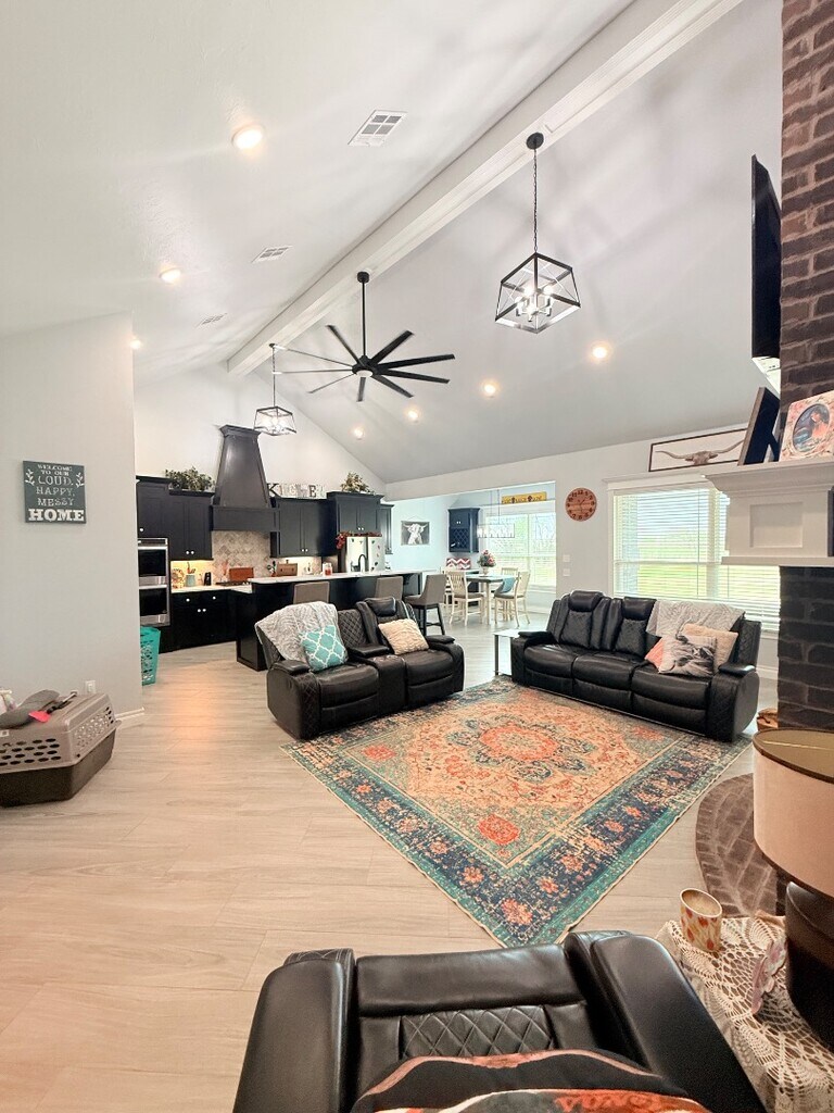 Discover comfortable living at 2276 County Road 1333, a spacious 3-bedroom, 3-bathroom single-family home in Blanchard, OK. This 2,358 sq ft residence features an island kitchen with modern appliances, large closets, vaulted ceilings, and hardwood and tile flooring throughout. Enjoy added conveniences like a multi-use room, attached garage, patio, fireplace, and ample storage including a pantry and linen closet. The home is equipped with air conditioning, ceiling fans, and washer/dryer. Pet-friendly with a 1-year lease minimum, a $500 nonrefundable pet fee, and additional monthly fees for multiple pets. Experience a perfect blend of style and functionality in this inviting home.