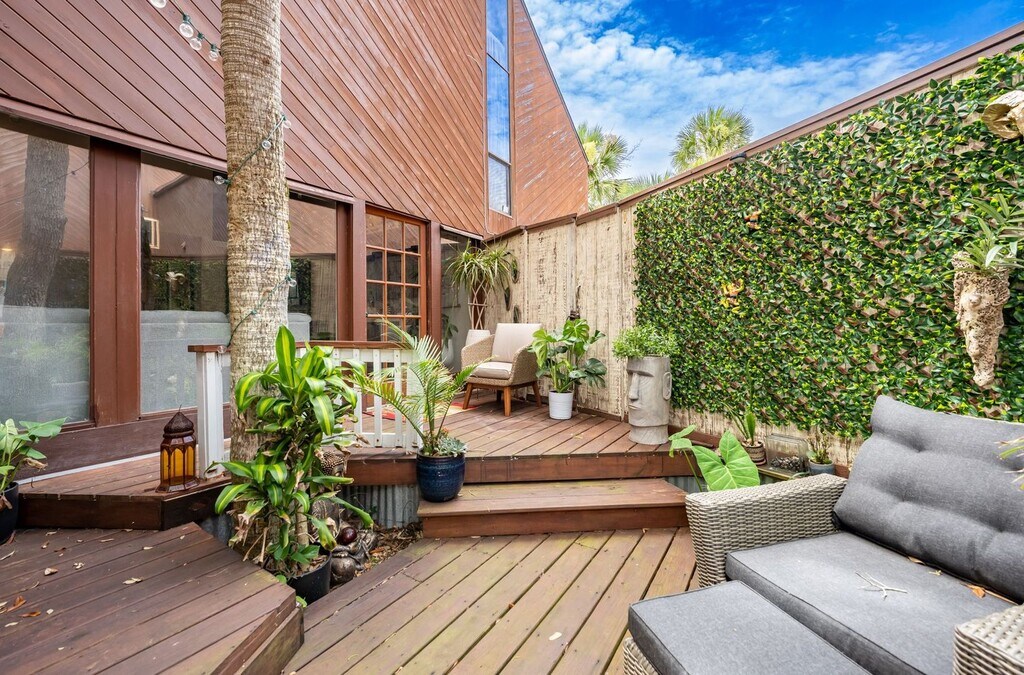 Chalet by the sea. Unique fully furnished townhome in Sea Gardens with 3 levels 3 bedrooms tons of natural light and a bonus room and a bonus loft, and a private decked back yard or patio area. Enjoy your private walk to the Atlantic ocean to fish, paddleboard, relax or just look for shells. This community also offers its own beach front deck and views of the ocean bluff. This home can be leased from 3 months up to 12 months. Pets are accepted HOA restricts to 25 pounds and under.