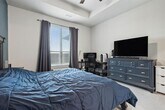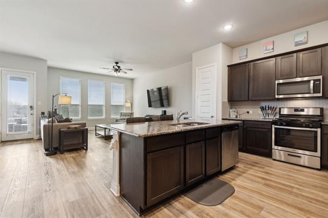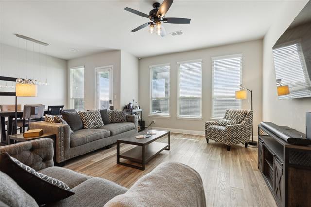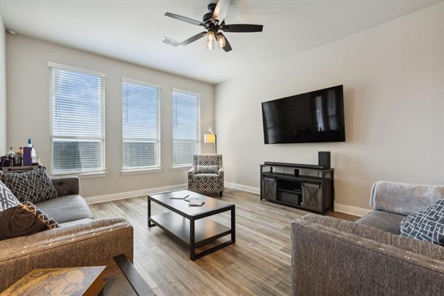 4 BEDROOM, 2 BATHROOM, BRICK HOME WITH OVERSIZED 2 CAR GARAGE ON INTERIOR LOT WITH NO ONE BEHIND YOU WITH EASY ACCESS TO I35. This house is just over 3 years old and is better than new because all of the small builder issues that come with a new house have been resolved. Built by History Maker Homes, you get a nice white brick with dark trim and accent wood design on the front. Inside you have Luxury Vinyl Flooring throughout and Carpet in a few of the Bedrooms along with Ceiling Fans and Walk-in Closets in 3 of the rooms. The Front Room can also be used as an office or Media Room and can easily have solid doors installed. Kitchen and Living area is open and spacious with Granite countertops, Island, 42 inch Dark Wood Cabinets, Stainless Steel Appliances including Gas Range, Dishwasher, Microwave, and Refrigerator. Perfect entertainment space with Living Room and Dining area overlooking the backyard and Covered Patio. Solar Screens on the back help out as well and the original screens are available still. Fenced Backyard with currently no one behind you, Garage has extra storage space, home has Home Pro Alarm, and more. Home is equipped with a Solar Panel System. Home is for sale if someone is interested. Easy Approval process. Managed by a professional Company as you can tell by the photos and description so rest assured you will have a great experience here. 3D Tour and floorplan available online. This home is available for immediate move-in and easy to apply for by scanning the QR code in the last photo or in the house.