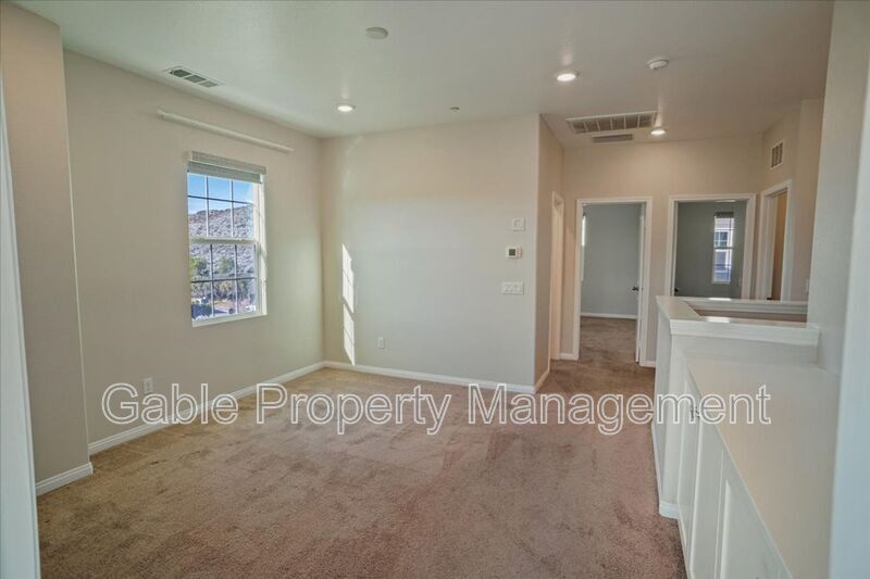 Discover comfort and style in this stunning corner-unit home located in a modern, vibrant community, complete with a large grassy area just outside the front door. This spacious 3-bedroom, 3-bathroom residence also features a versatile loft—ideal for a home office, playroom, or additional living space. Enjoy relaxing mornings and evenings on the private, fenced patio. Inside, the freshly painted open floor plan offers a bright and welcoming atmosphere, with recessed lighting, a generously sized living room, and an abundance of windows that fill the home with natural light. The upgraded kitchen is a chef’s dream, showcasing white cabinetry with ample storage, granite countertops, a large center island, and stainless steel appliances including a refrigerator, oven, microwave, and dishwasher. The adjacent dining area is perfect for everyday meals or entertaining guests. A convenient main-level powder room with an upgraded vanity completes the first floor. Upstairs, you’ll find three spacious bedrooms with pleasant views. The primary suite features recessed lighting, a luxurious ensuite bathroom with dual sinks, an upgraded vanity, a separate soaking tub and shower, and a large walk-in closet. The hallway bathroom includes an upgraded vanity and a shower/tub combination. A dedicated upstairs laundry room offers a washer, dryer, and built-in cabinetry for added convenience. Additional highlights include a 2-car attached garage and energy-efficient solar panels to help reduce utility costs. Residents enjoy access to community amenities such as a pool and spa, all while being conveniently located near schools, shopping, dining, and walking and biking paths. Don’t miss the opportunity to live in this beautiful, energy-efficient home in a highly desirable community.