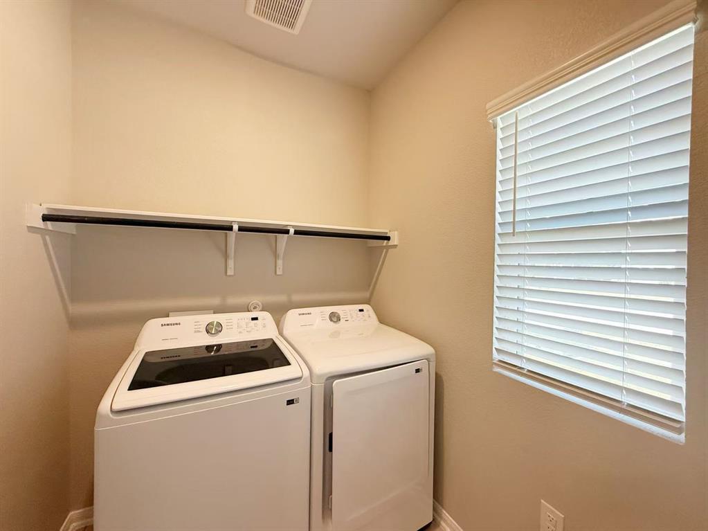 This clean and move-in ready home offers 3 bedrooms, 2.5 baths with the primary suite on the first floor. Open living flows into the kitchen with granite island, countertops, and gas stove. Refrigerator, washer, and dryer included. Half bath near utility room for convenience. Upstairs features two bedrooms with spacious walk-in closets. Enjoy a beautiful front porch perfect for morning coffee and a private backyard with detached garage. Great location close to shopping, schools, restaurants, Hutto Downtown, Star Ranch H-E-B, Lowe’s, Home Depot, and major highways. Welcome home!