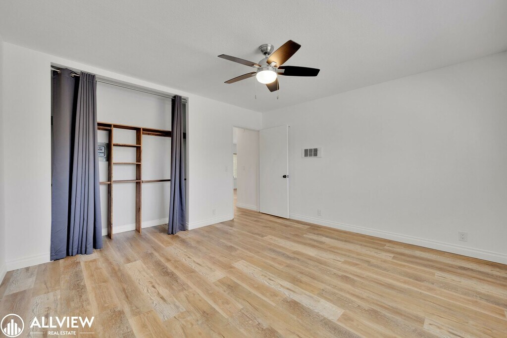 Apply now: This bright upstairs 1-bedroom, 1-bath condo in Vista Hills offers stylish updates and everyday comfort. The kitchen is outfitted with Samsung appliances, soft-closing drawers, and new cabinets for modern convenience. The open living and dining area features new flooring, a wall A/C unit, ceiling fans in the dining room and bedroom, and abundant natural light. Enjoy the outdoors from both your front and private back balconies, perfect for relaxing or entertaining. Additional highlights include washer/dryer, a one-car garage, and access to community amenities such as a pool, spa, and tennis courts. Conveniently located near the transit center, shopping, dining, and parks, this condo blends comfort, style, and accessibility. This property is available for both agent-led and self-guided showings, making it easy to tour on your schedule.