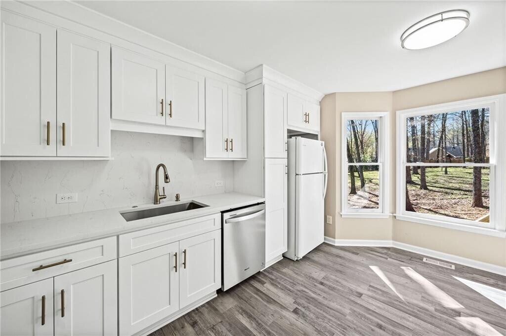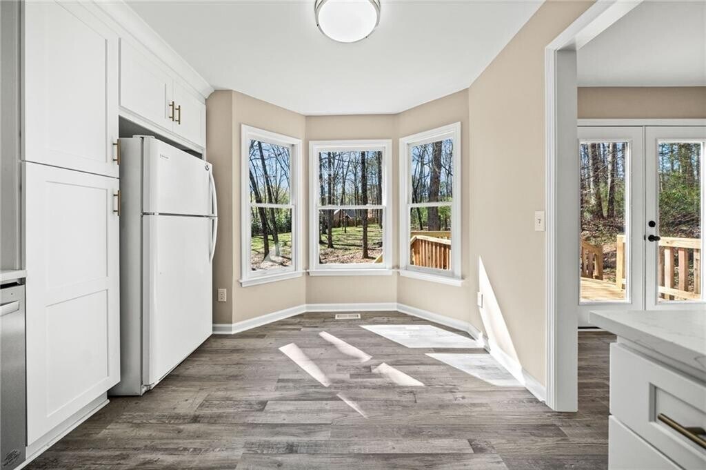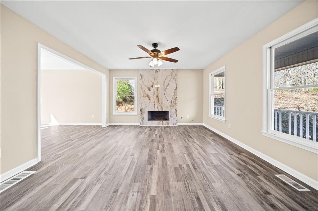FOR RENT! Discover modern,updated living in this beautifully refreshed rental property,perfectly situated on a charming .62-acre lot in a peaceful cul-de-sac just outside downtown Ball Ground in Cherokee County. With quick access to I-575,Alpharetta,Canton,and Woodstock,convenience is always at hand. Step inside to a spacious living area bathed in natural light,where a striking granite wall fireplace serves as a stunning focal point,exuding warmth and sophistication. The updated interiors feature brand-new LVP flooring throughout and fresh,modern paint,creating an inviting and contemporary atmosphere. The adjoining dining room offers scenic views of the generous rear deck and fenced backyard—ideal for intimate meals or lively gatherings. The updated kitchen boasts new cabinets and counters,along with a charming bayed breakfast area that enhances the home's appeal. Offering three comfortable bedrooms plus a versatile bonus room that easily adapts as a fourth bedroom,media room,or home office,this rental is designed to fit your lifestyle. Updated bathrooms add a modern touch,and outdoor entertaining or quiet relaxation awaits on the spacious rear deck,all within a secure,fenced yard perfect for privacy and pets. Located in a neighborhood with top-rated schools,this property combines modern upgrades,flexible living spaces,and an unbeatable location. Schedule your tour today to experience this exceptional rental home! MLS ID 7730422
