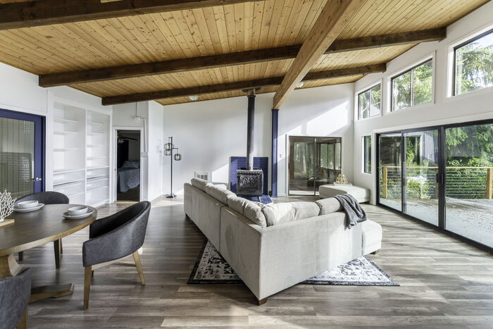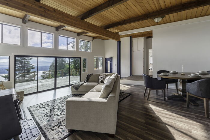 This beautiful cabin style home has lots of windows to enjoy the view of the lake. Garage top deck to view the sunsets. Two large bedrooms and two baths. Beautiful kitchen with white cabinetry and butcher block counter tops. Stainless steel range and dishwasher. Kitchen also features an over the range microwave. Living room features a wood burning fireplace. Bonus room located upstairs which can be used as an office or playroom. RV parking. Two car garage. Security deposit $2495.00. Furnished option 3495.00 dollars per month. This property allows self guided viewing without an appointment. Contact for details.