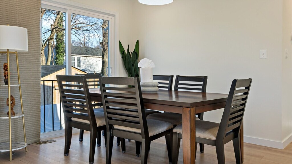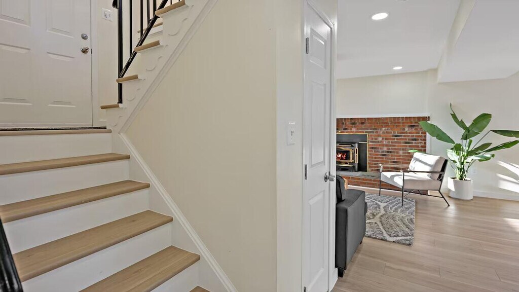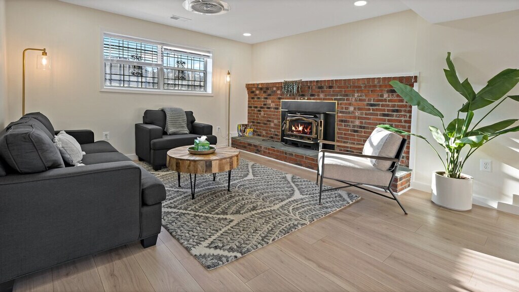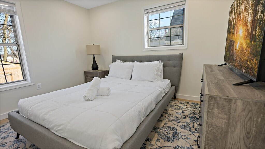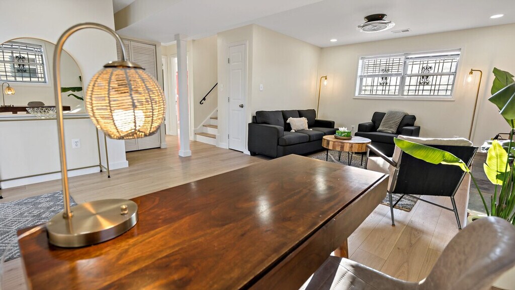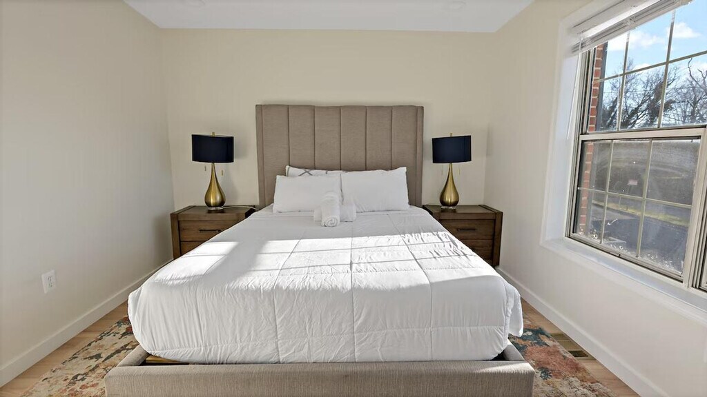 Feel at home in this spacious 3-bedroom, 2-bathroom retreat in Maryland, perfect for families or groups. This home features two living rooms, including a cozy reading room by the fireplace and an upper living area for movie nights. The fully equipped kitchen is ideal for culinary creations. Enjoy the convenience of a full-size washer/dryer. The main level features a comfy living room and two cozy bedrooms. The upper level features a serene queen bedroom and an additional bath. Free parking is available for 1 to 2 cars in the driveway. Pets are welcome for an extra fee. The apartment is centrally located, just a minute’s walk to the metro for easy commuting. Enjoy a grassy front yard and a backyard with seating for sunny BBQs. Please be happy. Registration Number: HOU-0052-2022-STR-H [SI]