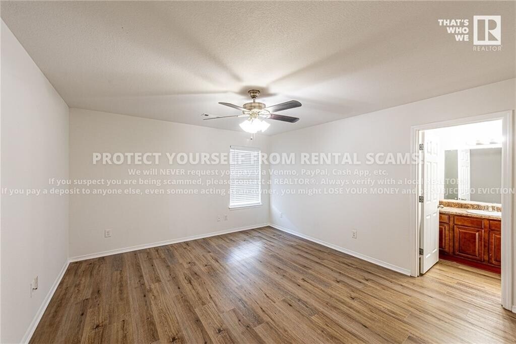 AVAILABLE NOW! Check out this gorgeous 4 bedroom 2 bathroom home! Head inside to this beautifully updated residence featuring an open-concept floor plan with luxury vinyl plank flooring throughout! The spacious living area is filled with natural light from large windows and flows seamlessly into the kitchen, which features rich wood cabinetry, granite-look countertops, and a double-basin sink. Relax in the generously sized primary bedroom, complete with a ceiling fan and a private ensuite bathroom! BONUS: ALL APPLIANCES INCLUDED! Don't miss the fenced in backyard! **Tenant is responsible for all utilities and lawn care/maintenance MLS# 1323195