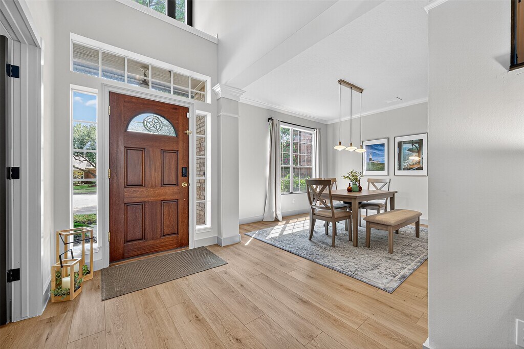 Beautifully updated 4-bedroom,3.5-bath home in Cinco Ranch North Lake Village! Soaring two-story living room floods the home with natural light. Recent upgrades include a new roof,fresh paint,and updated flooring. Enjoy formal dining,private study,game room,and a spacious family room open to the kitchen with quartz counters and gas cooktop plumbing. Primary suite boasts a fully renovated spa bath; all bedrooms offer walk-in closets. 2.5-car garage with finished workshop/hobby space. Large cul-de-sac lot with room for a pool,just steps from the golf course and Beach Club. Quick access to I-10,Grand Pkwy,and top-rated Katy ISD schools! MLS# 15790557
