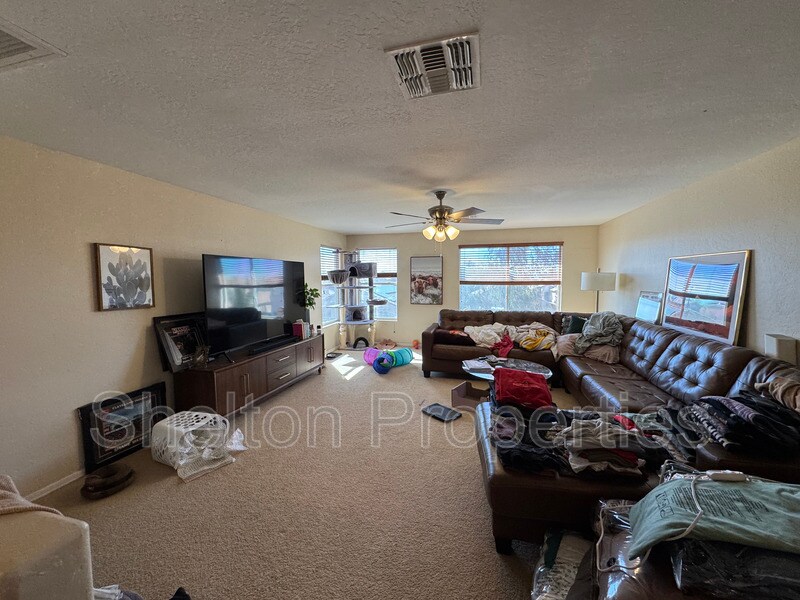 Spacious 4-Bed, 2-Bath home offering a perfect blend of comfort and luxury. The heart of the home is a spacious great room highlighted by a warm fireplace and sliding glass doors that open to the back patio, creating a seamless flow for indoor-outdoor relaxation. The kitchen is well-equipped with built-in appliances, extensive cabinet space, and a convenient breakfast bar for casual meals. Upstairs, you will find a large, versatile loft that serves as an ideal space for a media room or home office. The primary bedroom is a true sanctuary, complete with its own private fireplace, plush carpeting, and a spa-like ensuite featuring dual vessel sinks, a jetted tub, and a generous walk-in closet. The outdoor experience is equally impressive, boasting a wonderful backyard with a covered patio, a built-in BBQ, and a refreshing pool and spa accented by a serene rock waterfall. With a freshly painted interior and modern wood-look flooring, this rare find is move-in ready and designed for both comfort and entertainment— don't miss out!