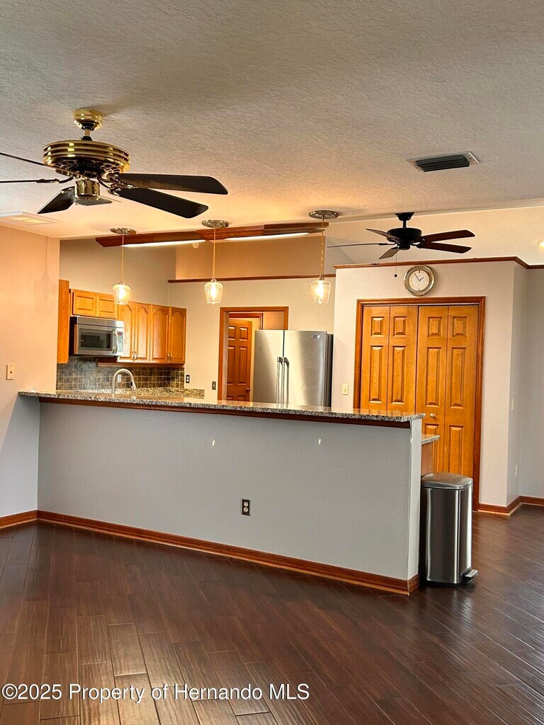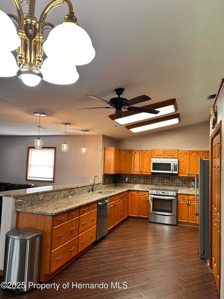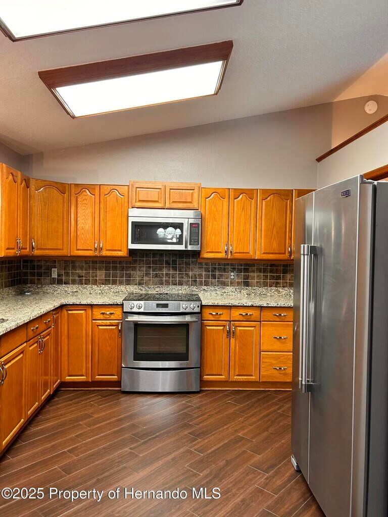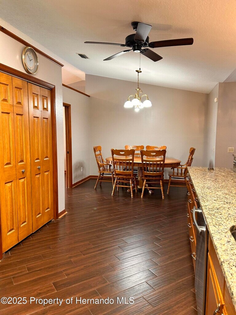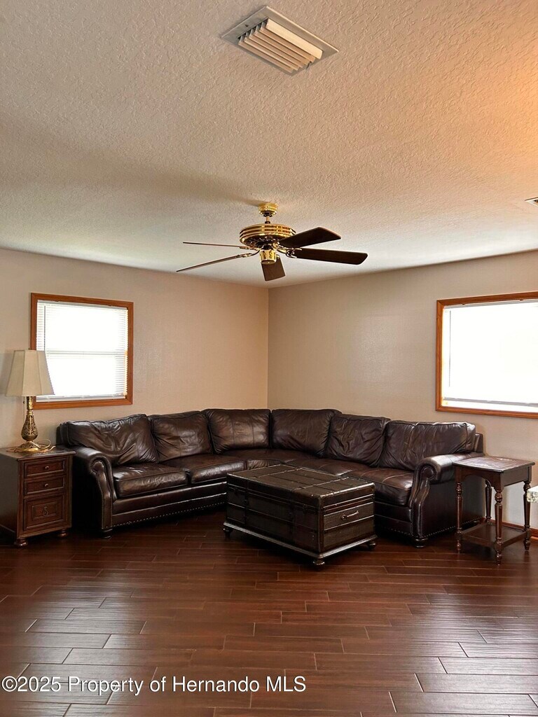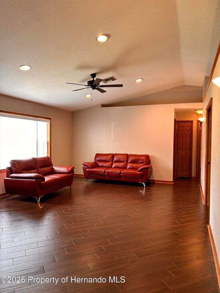 Specious 3 bedroom 2bath 2 car garage in the heart of Spring Hill. The home is located on a corner lot with 1893 sf of living space. Home offers a split bedroom floor plan for privacy. Inside the home you will find 2 separate living spaces with plenty of room for entertaining quests. Wood like Porcelain tile throughout the home. No carpet. Eat in kitchen is very specious with Stainless steal appliances, granite counter tops with plenty of counter space and ample storage. Enjoy your morning coffee in the screened in patio that leads in to a fenced in backyard. The master bedroom features a private ensuite bathroom walk in shower and walk in closet. There is a inside the home laundry room with utility sink and plenty of cabinets. Well irrigation system. There are two sets of sofas in each sitting area ,Kitchen table with six chairs, and a patio table with four chairs. The home is located just minutes to all shopping, restaurants, schools and Hospitals. Just a short drive to Weeki Wachee springs and all major highways, A quick access to the sun coast highway will take you straight in to Tampa international Airport.Please call for your private showing today.
