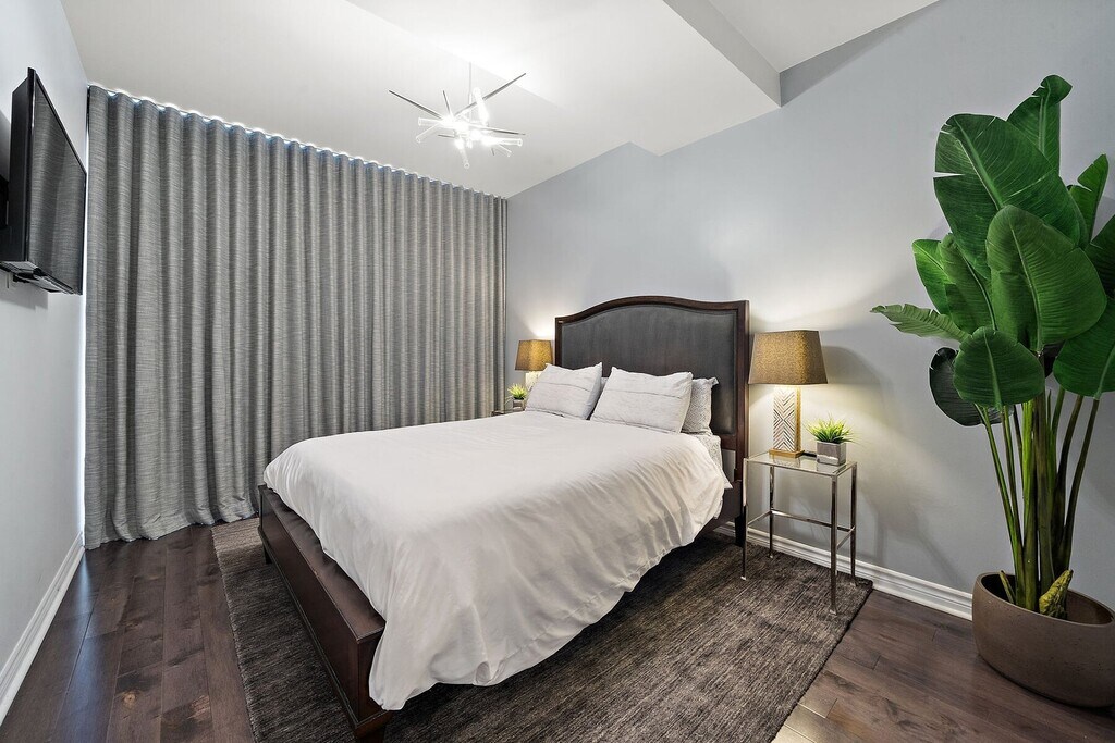 Furnished and modern condo for rent in Lachine. This unit features 2 bedrooms and 1 bathroom, offering the perfect blend of comfort and style in a vibrant neighbourhood. Bright and spacious, the apartment warmly welcomes you upon entry with abundant natural light filling every room. The main living areas have been designed in a minimalist style, combining simplicity and elegance to create a calming atmosphere. One parking space is included. Ideally located, you'll enjoy easy access to major roads while maintaining your peace and quiet. Public transportation and Angrignon Metro station nearby.