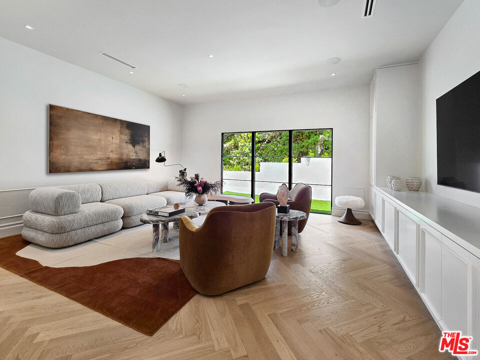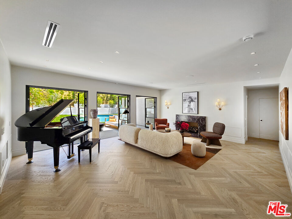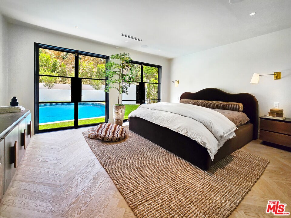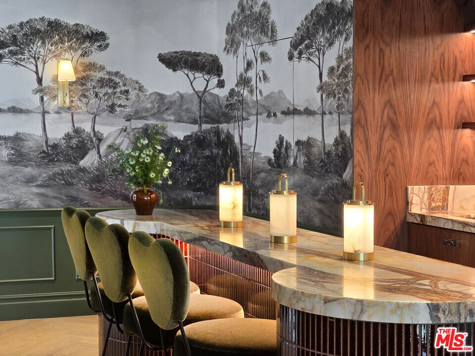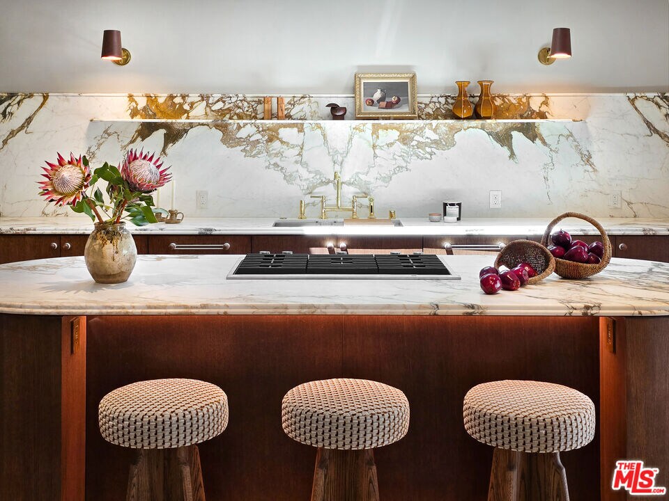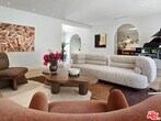 Perched on a corner lot of a serene knoll in the heart of Beverly Hills' coveted Coldwater Canyon, this exquisitely just remodeled single-story Contemporary estate is a newly completed design masterpiece by renowned designer Nina Takesh. Spanning over 2,900 square feet, this four-bedroom, five-bathroom residence redefines bespoke luxury, blending refined sophistication with effortless California living. From the moment you enter through Pinky's custom iron doors, it's clear no expense was spared. The home features engineered herringbone wood floors, Roman Clay walls by Portola, and custom finishes at every turn. The entire property is outfitted in real marble, lending timeless elegance and material integrity throughout. The formal entry, accented by a coved ceiling and sculptural plaster chandelier by Visual Comfort, opens into an oversized, step-down family room that connects seamlessly to a designer bar and dining area. The bar features a rare, hand-hammered polished steel sink by Mick De Giulio for Kallistaone of many exceptional selections, as every plumbing fixture in the home is exclusively from the luxury brand Kallista. The formal living room is centered around a one-of-a-kind fireplace clad in dramatic Rosso Levanto marble and opens to the expansive backyard through three sets of glass doors. The chef's kitchen is a study in both beauty and functionality, with a central island, breakfast bar, top-tier Jenn Air appliances, Calacatta marble backsplash, and flawless flow. All four bedrooms are en suite, including the luxurious primary suite with a walk-in closet and private access to the backyard. Every bathroom features custom glass shower doors inset with a mix of polished nickel and brass, adding a tailored, jewel-box quality to the spaces. Outside, the newly redone resort-style pool, built-in BBQ station with refrigerator, al fresco dining area, and lush landscaping creates a true entertainer's paradise. There's even a dedicated dog run for your four-legged guests. Lighting has been curated down to the last detail: all decorative fixtures are by Visual Comfort, and the recessed lighting is powered by Elemis, Visual Comfort's most advanced home lighting solution. A state-of-the-art home automation system ensures effortless control of lighting, climate, and entertainment. Additional highlights include elegant wainscoting throughout and premium architectural hardware from the luxury Australian brand Bankston. Just minutes from the legendary Beverly Hills Hotel and the world's most coveted shopping and dining on Rodeo Drive, this top-of-the-line residence offers an extraordinary level of design, customization, and comfort designed for the most discerning buyer. Also available short term. MLS# 26692161