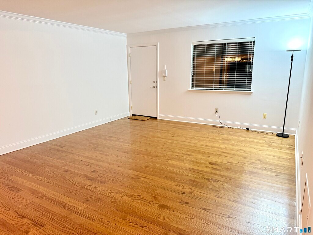 Call for Availability - Great opportunity to live in the sought-after gated community of The Chesterfield in mid-city Stamford. This 1BR home features a spacious open floor plan with a large living room, an updated kitchen with granite countertops, stainless steel appliances, wine fridge, breakfast bar, and a dining area with sliders leading to a private deck and walk-out access to a grassed area, great for entertaining and easy one-level living. The oversized bedroom includes two large closets, and the renovated bathroom offers a spa-like feel. Hardwood floors, fresh paint, in-unit laundry, and ample storage complete the home. Enjoy 24-hour security, two pools, and a convenient location close to shopping, dining, parks, and entertainment. Just move right in! MLS# 24154232