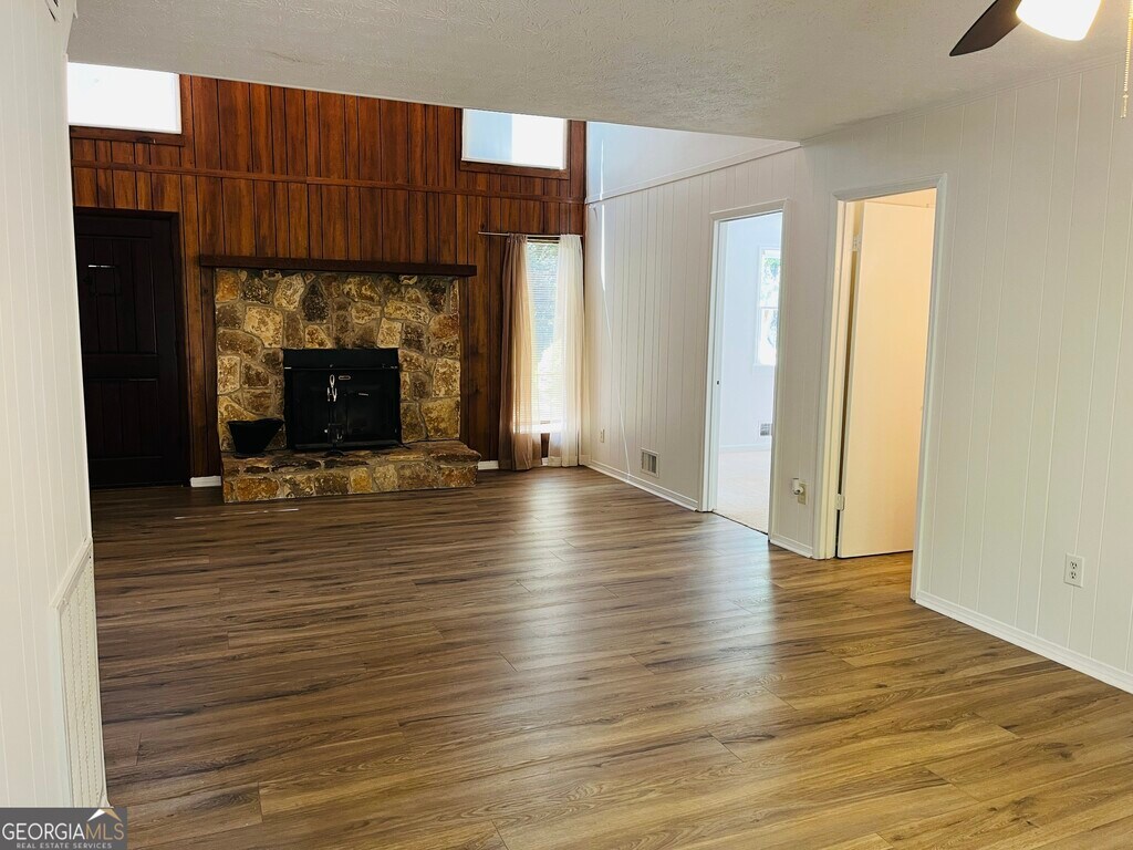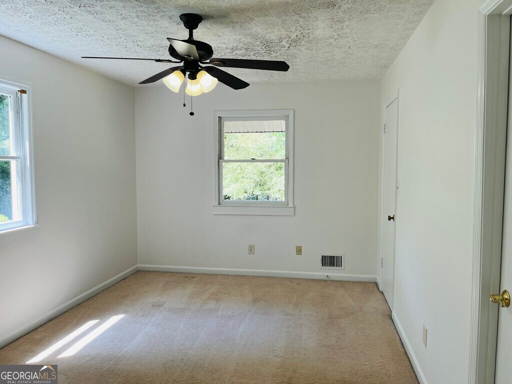 Charming 3-bedroom, 2-bath home nestled on a private lot with fresh interior paint throughout. This unique property features a stunning wood-burning fireplace and soaring vaulted wood ceilings that create a warm, inviting atmosphere. The flexible floor plan offers the potential for two primary suites, plus an upstairs flex space ideal for a home office, playroom, or guest area. Enjoy outdoor living on the spacious deck, with the added convenience of a separate storage garage located at the rear of the home. Inside, you'll find a large living and dining area, along with an additional den perfect for a game room or home theater. Tucked away for a peaceful, secluded feel, yet just minutes from all that Downtown Newnan and I-85 have to offer-this home truly gives you the best of both worlds. MLS ID 10740822