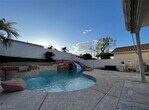 Beautiful home located in the gated community of Green Valley Ranch featuring a private pool and a two-car garage. This spacious residence offers separate living and family rooms, plus a convenient downstairs bedroom. Interior highlights include ceramic tile and laminate flooring, and kitchen with granite countertops, ample counter space, and a center island. The laundry room includes built-in cabinets for extra storage. The primary suite boasts a large walk-in closet, ceiling fan, and private balcony. The primary bathroom features double sinks, a vanity area, and a separate shower and soaking tub. Enjoy a lush backyard with a covered patio perfect for entertaining or relaxing outdoor. Excellent location close to shopping, dining, The District, and all the amenities of Green Valley Ranch.