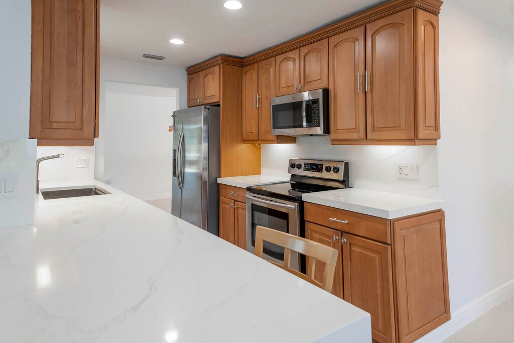 Discover this stunning, fully renovated 3-bedroom, 2-bath single-family home for rent in Palm Beach Gardens. Perfectly located near Juno Beach and Jupiter Beach, this modern residence ideal for long-term tenants seeking a beautifully updated home in one of the area's most desirable.Step inside to a bright open-concept living space featuring brand-new flooring, lighting, and an airy layout filled with natural light. The kitchen is equipped with quartz countertops, premium cabinetry, stainless steel appliances, and plenty of prep and storage space.Both bathrooms have been tastefully upgraded The home also includes impact windows throughout and a brand-new AC 2025.Located just minutes from first-class restaurants, shopping, major highways, PBI Airport (approx 30 min)Roger Dean Stadium.