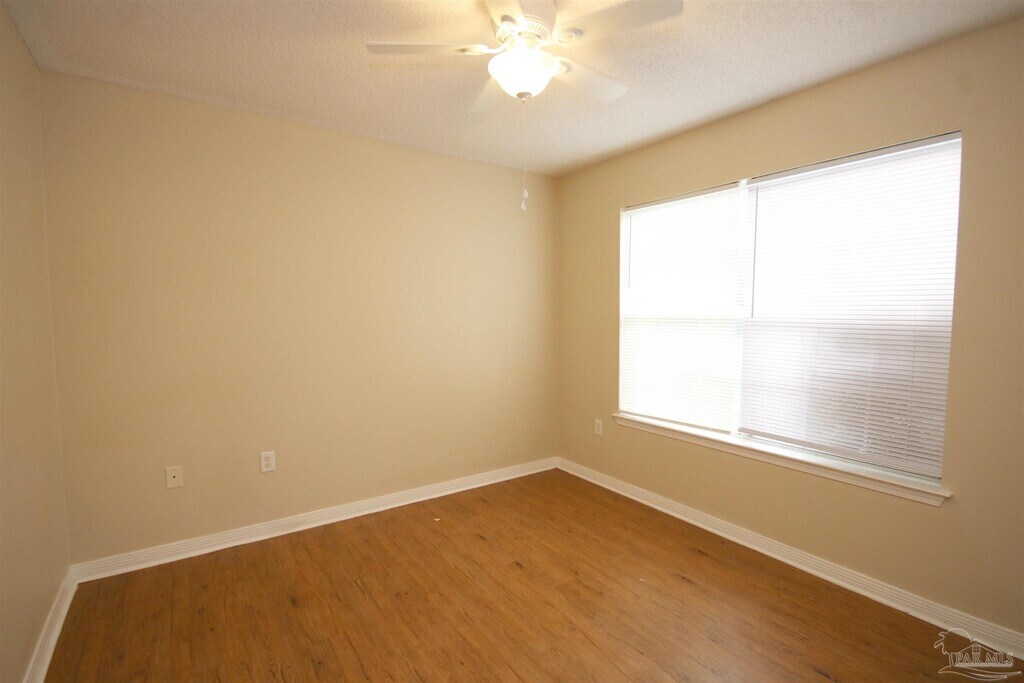 3-bedroom,2-bath home in Northeast Pensacola’s Sandy Creek subdivision,located just outside the University of West Florida campus and convenient to shopping,dining,and local amenities. This home features mostly wood-look flooring throughout with no carpet. The galley kitchen includes all kitchen appliances. The primary bedroom suite offers a ceiling fan,walk-in closet,and private bathroom with a tub/shower combo. Two additional bedrooms are nicely sized and share a full bathroom with a tub/shower combo. Additional features include an indoor laundry room and a back deck overlooking a shaded backyard and creek. Pet friendly with owner approval and a $250 non-refundable pet fee per pet. Aggressive breed dogs will not be considered. Residents are required to have renter liability insurance,which can be added for $11.95/month,or you can opt into the Resident Benefits Package (RBP) for $45/month,which includes renter liability insurance,HVAC air filter delivery,and on-demand pest control. More details in the application. Property is currently occupied—please do not disturb the residents. Coming available 5/15.