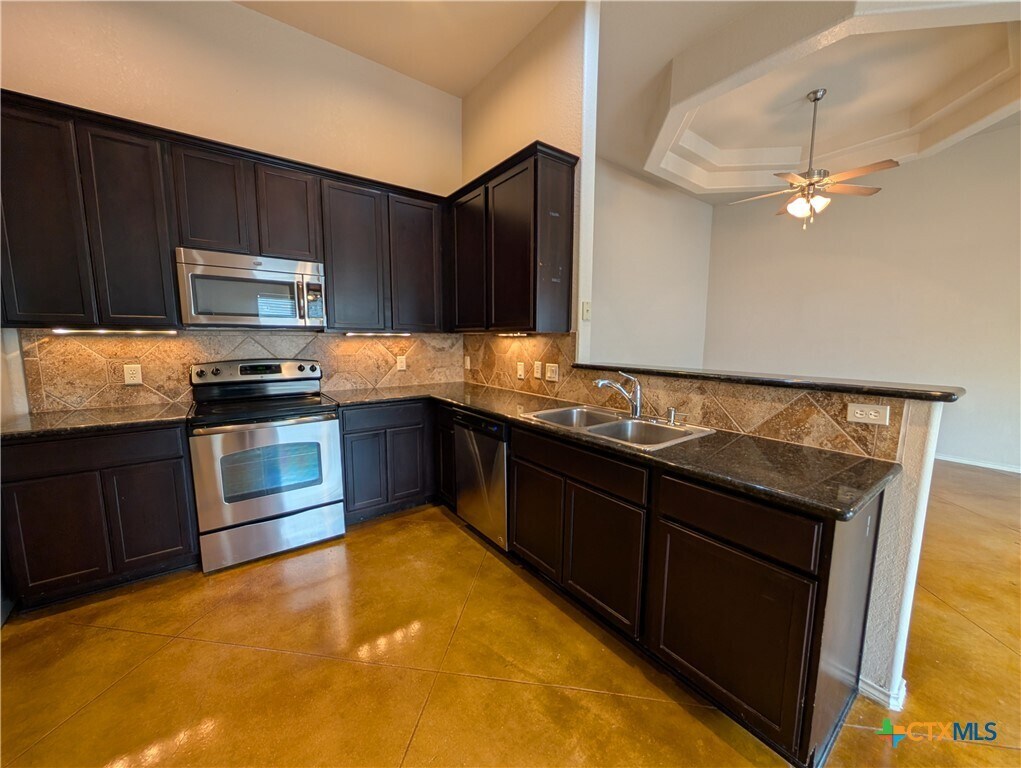 3/2/2 Duplex off HWY 46. 3.5 Miles to Downtown New Braunfels. 3.6 Miles to Creekside Area shopping,restaurants,and entertainment. Flooring is etched stained concrete,no carpet. Kitchen includes: fridge,dishwasher,stove/oven range electric,built in microwave,breakfast bar,recessed lighting,pantry,& granite countertops. Other Features: ceiling fans,trayed ceilings,vaulted ceilings,interior washer/dryer connections,double vanities,shower tub combo,large covered patio,one of the largest fenced in yards on the street,garage door opener,& a sprinkler system. CISD Pets ok / 2 max / 50 lbs max. Cats - Proof of Spay/Neuter ( sorry,No aquariums)