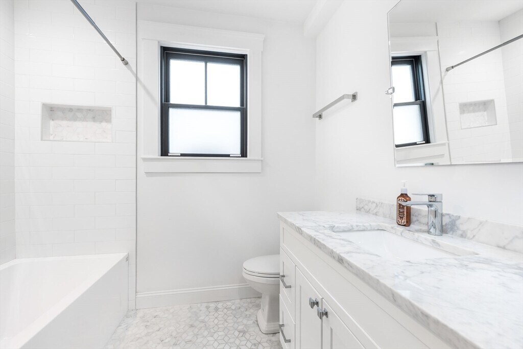 Nestled in East Boston’s vibrant Eagle Hill,this meticulously designed 2-bed,2-bath unit plus an office,with private outdoor space blends contemporary style with comfortability. The open-concept kitchen/living area,perfect for relaxing or entertaining,features a chef’s kitchen with high-end stainless steel appliances,sleek countertops & ample cabinetry. The spacious primary suite,strategically situated at the rear of the unit,boasts an en-suite bath,walk-in closet,and a private deck. The second bedroom accommodates a queen bed and offers a generous closet. Both full bathrooms feature modern vanities,sleek tile work and premium fixtures. Additional highlights include hardwood floors,central A/C,in-unit laundry,abundant built out closets throughout,and a shared enclosed yard. Close proximity to Downtown Boston,Logan Airport,subway and major highways. MLS# 73448867