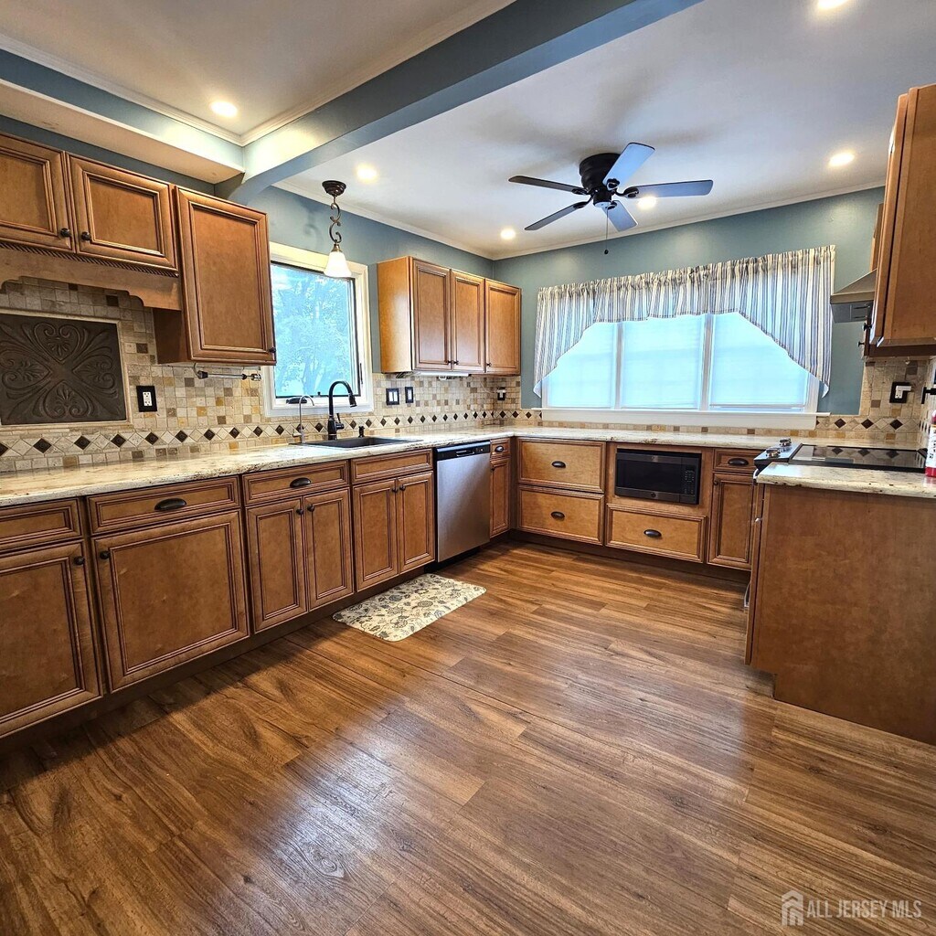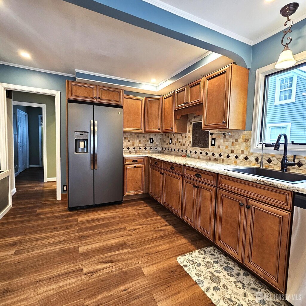 Move in ready,updated 4 bedroom,2 full bath property available. This property features recessed lighting,an open floor plan and vinyl plank flooring. Kitchen offers custom cabinetry,tiles backsplash and slate appliances. Laundry room is conveniently located on the 2nd floor. Backyard is fenced in,has lovely paver patio area,gazebo and garage. The partially finished basement is great for extra living space.