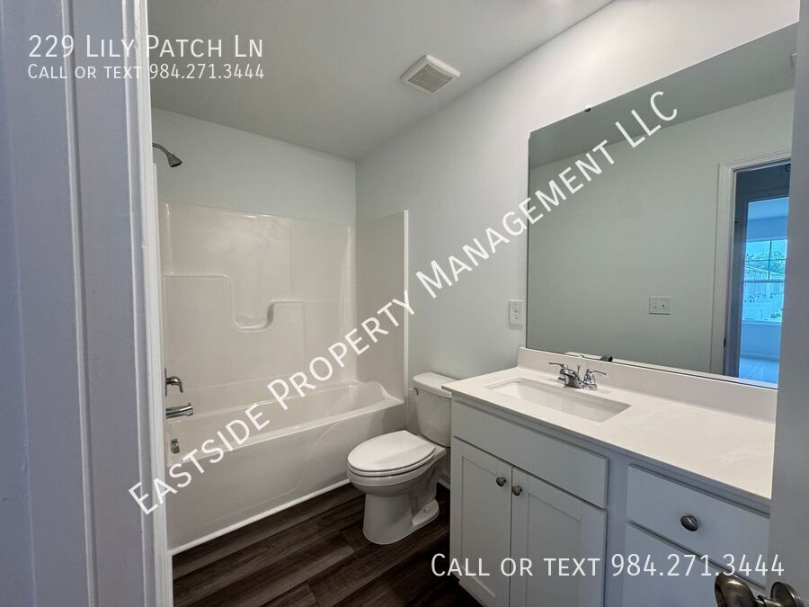 This new two-story townhome has an inviting contemporary design. The main-level Great Room flows seamlessly into the dining room and chef-caliber kitchen, while the patio is perfect for outdoor activities. Upstairs are two secondary bedrooms and the owner's suite, complete with a walk-in closet and full-sized bathroom. Washer-dryer, Stainless steel appliances included. Just minutes away is the downtown Smithfield offers boutique shopping, dining, and cultural attractions rich in local history. Downtown Clayton, less than 10 miles away, features charming breweries, fitness studios, and more. For commuters, Holts Landing provides quick access to major employers such as Amazon, Grifols Therapeutics, and Novo Nordisk, all in minutes' drive. Property Highlights: Bedrooms: 3 large bedrooms with ample closet and storage space Bathrooms: Luxurious 2 full baths + 1 half bath Kitchen: Modern kitchen with lot of cabinet space and updated appliances Living/Family: Open floor plan, lot of natural light, perfect for relaxing, family time and entertainment Outdoor Space: large backyard, ideal for gatherings or quiet evenings Parking Options: On the driveway and attached garage PLUS: Sidewalks and streetlights for your and your kids safety Friendly neighborhood with HOA keeping the community quiet and beautiful. Tenants responsible for utilities & landlord pays for HOA and HOA covers grass. Utilities Not Included In Rent