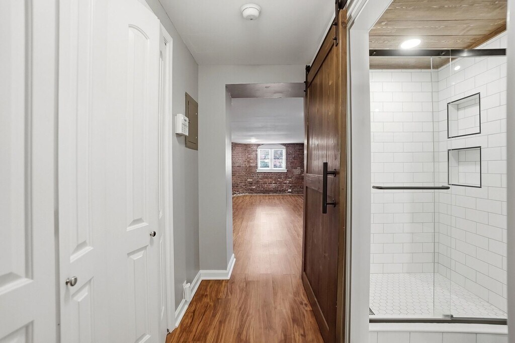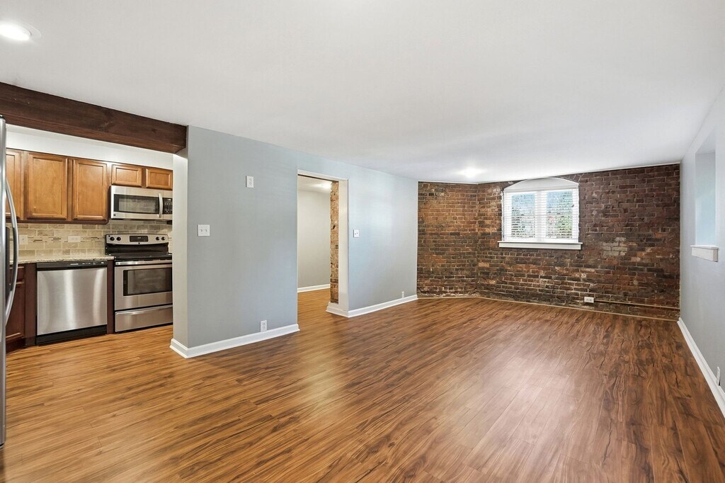 Experience the perfect blend of historic charm and modern comfort in this stunning 1-bedroom condo located in the heart of Uptown’s desirable Fourth Ward. This distinctive ground-floor unit features an open-concept layout where the kitchen flows seamlessly into the living and dining areas, highlighted by an original exposed brick wall that adds timeless character. The kitchen has been tastefully updated with granite countertops, a stylish tile backsplash, and stainless steel appliances. The renovated bathroom boasts a stand-up shower with subway tile, wood beam ceilings, built-ins, and a sleek modern vanity with updated fixtures. The spacious bedroom offers two closets and ample storage. For added convenience laundry facilities available in the building. Relax or entertain in the community courtyard featuring picnic tables and grills, ideal for enjoying Charlotte’s beautiful weather. Water is included at no additional cost. The unit is pre-wired for Google Fiber and comes with a dedicated parking space in the 5th and Poplar / Harris Teeter garage, plus a convenient storage unit located in the building’s basement. Located just steps from major employers, top-rated restaurants, Romare Bearden Park, and directly across the street from Harris Teeter, this condo offers both style and convenience in one unbeatable location. Schedule your tour now!