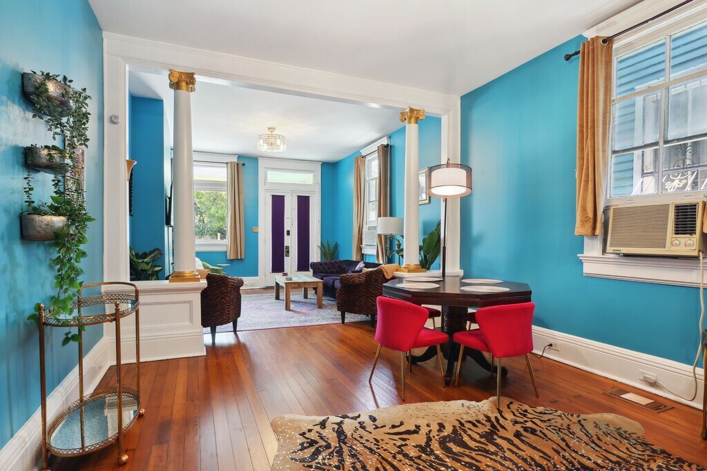 Welcome to this colorful gem in one of New Orleans' most beloved neighborhoods! This eye-catching double offers spacious living areas including double parlor, large kitchen and breakfast areas with high ceilings, classic architectural details, and large windows that flood the rooms with natural light. Enjoy the comfort of well-designed floor plans that offer both functionality and style coupled with a unique, vibrant color palette that reflects the spirited charm of New Orleans creating an inviting atmosphere that sets the tone for the rich experiences of city living. Relax in your own private backyard or enjoy the nearby parks and green spaces that offer a slice of tranquility amidst the urban buzz. Situated in a vibrant neighborhood known for its historic charm, lively festivals, and eclectic dining options, you'll be right in the midst of all that makes New Orleans so special. Explore the local culture, cuisine, and music scene just steps from your door. Unit is offered fully furnished. No pets please. Schedule a private tour today! ***CAN ALSO BE LEASED FULLY FURNISHED FOR $3,000/MONTH.