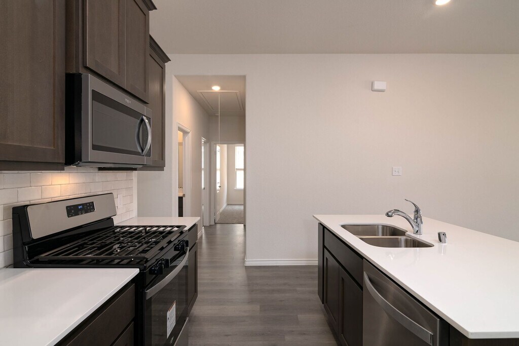 This home is located in Anna Crossing and features 4 bedrooms, 2 full bathrooms, and 2 car front entry garage. Beautiful 42'' Kitchen cabinets, stainless steel dishwasher and gas range. Spacious primary bathroom features oversized standing shower, deep soaking bathtub, dual sinks and walk in closet. Quartz countertops in kitchen and 2 bathrooms, brushed nickel plumbing fixtures, undermount sinks, designer paint colors, 2'' blinds, carpet in all bedrooms, tile in bathrooms and laundry room and laminate wood floors throughout the rest of the house. Large backyard, with covered patio located on a corner lot. APPLY ONLINE TODAY!
