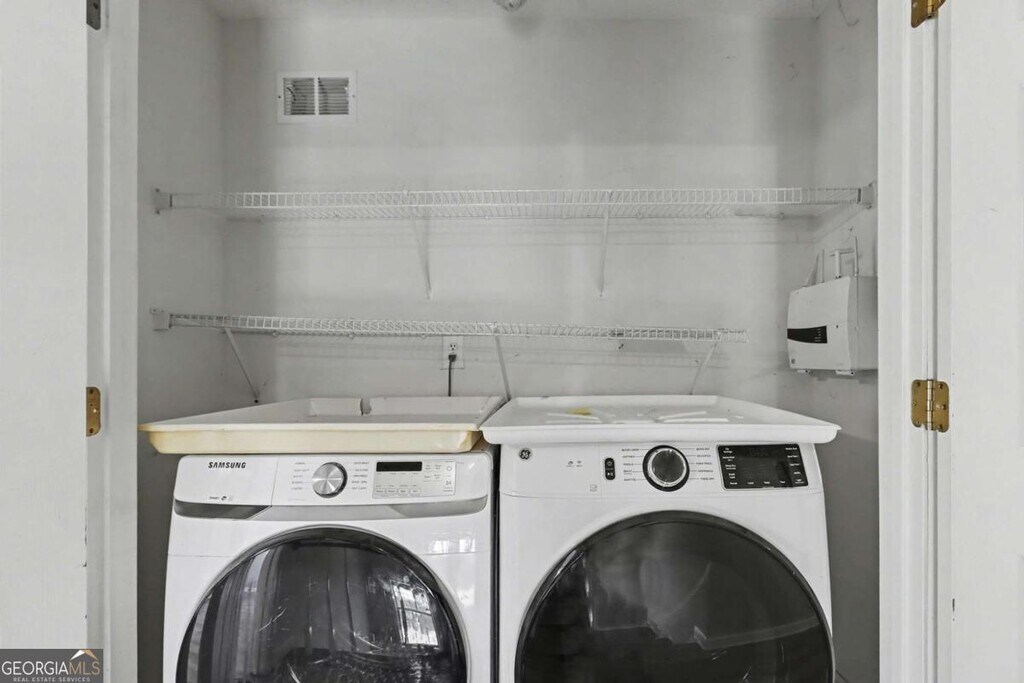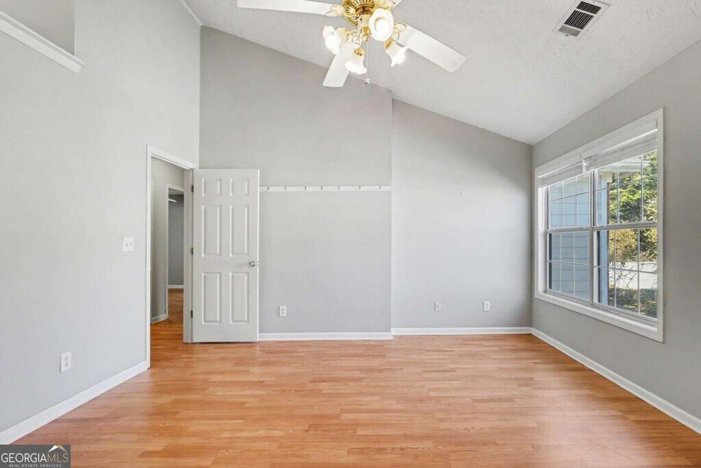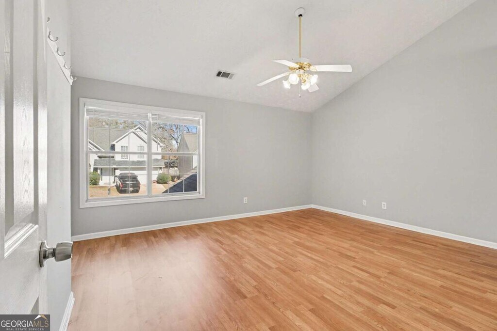 Step into sun-drenched living spaces where natural light pours through oversized windows and gleaming hard surface floors flow throughout every room. This wonderfully laid out two-story home in Duluth's established Berkeley Cove neighborhood offers the space and comfort of a single-family home with move-in ready appeal. The main level welcomes you with a spacious foyer that opens to a formal dining room with an elegant chandelier -- ideal for evening gatherings. The generous living room features a marble-surround fireplace, perfect for relaxing on cooler evenings, and connects seamlessly to the kitchen and breakfast nook. The kitchen showcases white cabinetry, sleek stainless steel appliances including a gas range and French-door refrigerator, stylish glass tile backsplash, and white countertops with a convenient peninsula for casual dining. Upstairs, the oversized primary suite boasts vaulted ceilings, a walk-in closet, and a spa-like en-suite bathroom with marble-look tile, a soaking tub, separate walk-in shower, and a vanity with seating area. Two additional well-sized bedrooms share a beautifully tiled full hall bath. A convenient upstairs laundry closet perfectly suited for full-size washer and dryer rounds out the second floor. Outside, enjoy a private fenced backyard with mature trees and a brick paver patio with a covered sitting area -- a great spot to unwind. The attached two-car garage provides ample parking and storage. Located in Duluth with easy access to shopping, dining, parks, and major commuter routes, this home offers everyday convenience in a quiet neighborhood setting. Your next home awaits. MLS ID 10691892