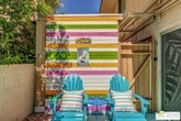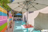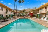 Vacation Rental Only. 30 DAY MINIMUM RENTALS. Seasonal Rates are $2800 a month, all utilities included. Available from November 1st, 2025 through May 31th, 2026 only. 90 DAYS MINIMUM RENTALS from January 1st, 2026 through May 30th, 2026. Welcome to quiet comfort in South Palm Springs. This Mid-Century pied-a-terre is designed to transport you from the stresses of work/cold Winters to the comforts of a warm holiday retreat. Featuring a large private furnished 200+ sq. ft. patio with atmospheric outdoor solar lighting. The colorful private patio is perfect for al fresco dining and relaxation. Enjoy the quiet setting with views that span from the up-close mountain views from the front, and views up to the former Bob Hope compound from the patio. This 2 bedroom, 2 (3/4) bathroom (one ensuite) condo features a full size refrigerator, gas stove, microwave oven, dishwasher, coffee maker, quality cookware and dining supplies, two comfy queen size beds, a large walk-in closet, dressers & suitcase stands, quality iron & ironing board, fire extinguisher and hair dryer. In the living room, the large wall mounted Smart TV offers free viewing stations via Samsung TV channels or view your favorite streaming channels 'via your personal accounts'. A strong WIFI signal is delivered throughout the unit via an upgraded multi-band mesh WIFI system. The low density community is quiet and friendly with two pools (1 heated), 1 Spa, poolside BBQ, comfortable sun loungers and table seating where you can swim, eat, read, relax and take-in mountain views. Perfect for travel nurses and all respectful guests. Located in the uniquely beautiful South Canyon area of Palm Springs. Surrounded by stunning mountain views, great hiking trails and nearby golf courses, yet only minutes away from downtown shopping, restaurants and bars. Conveniently located close to the Smoke Tree shopping center and other nearby stores & services where your day to day needs can be found: Ralphs, Jensen's, Bevmo, Dining, cocktails, post office, spa treatments and more. Sorry, no pets. Note: some furnishings have been upgraded/changed. Welcome to your Palm Spring's vacation getaway! MLS# 25573747PS