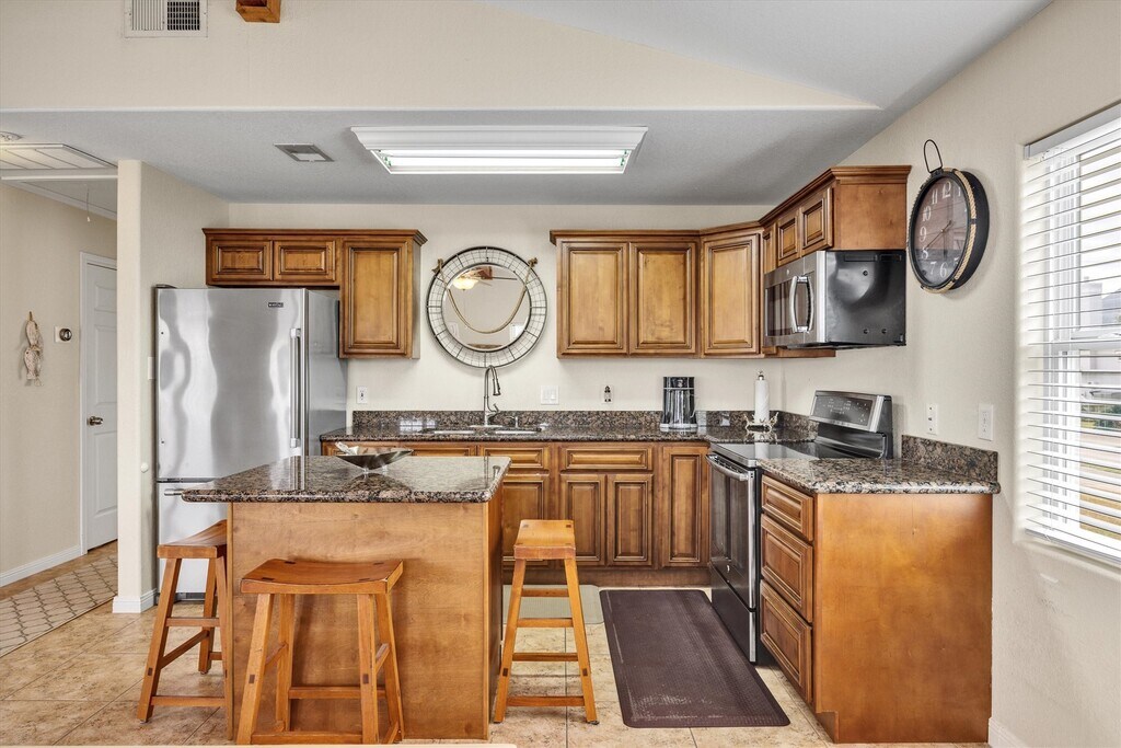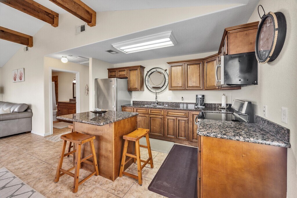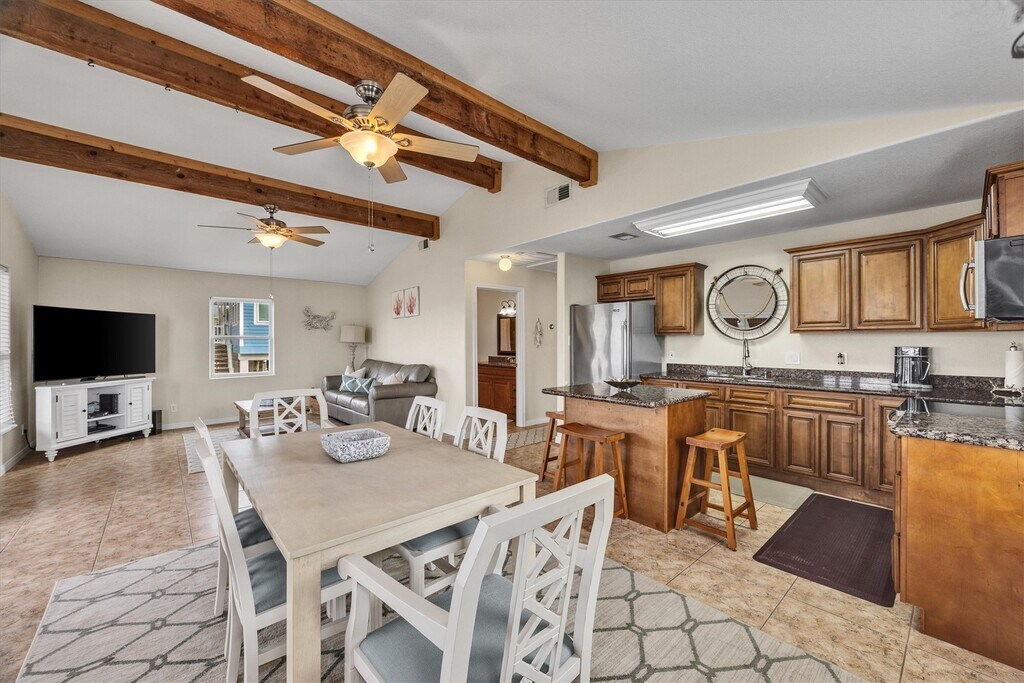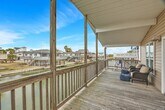 WATERFRONT GEM with NEW HVAC! Make this adorable cottage your very own! This charming 2-bed,1-bath canal home offers bright,open-concept living with vaulted ceilings and wood beam accents. The spacious kitchen flows into a sunny living area—perfect for gatherings! Relax on the covered deck with tranquil canal views or entertain downstairs in the shaded lounge. Fish from your private dock or launch your boat with direct access to West Galveston Bay. Bedrooms are tucked away for privacy and share a generous bath. Just a quick golf cart ride to the beach and close to community amenities: boat launch,pool,fishing pier & frisbee golf. A standout coastal retreat in a sea of listings! Scroll through the photos to see fun,AI-generated ideas for fresh and colorful exterior paint options—imagine the possibilities! MLS# 95082835