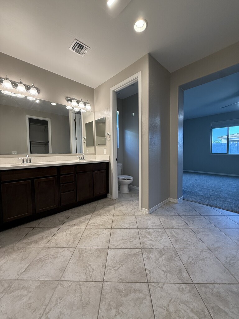 This immaculately maintained home is ready to rent! A five-bedroom and two full-bathroom home has all of the high-end finishes you are looking for. From the gorgeous kitchen cabinets and beautiful quartz countertops to the maintenance-free backyard with a full, covered back patio, all the details have been carefully planned, making this the perfect home for those who want to feel like they are living in luxury in the heart of Queen Creek. The master bedroom is separated from the other bedrooms, offering an extra level of privacy within the home.